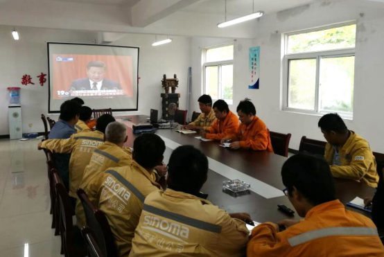 (圖二:施工閑暇觀看十九大開幕會(huì))