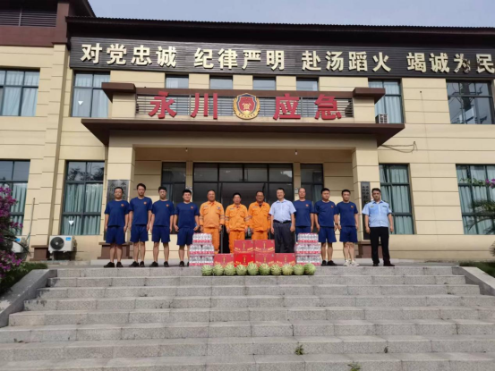 擔(dān)央企責(zé)任,送暑日清涼。進入暑期以來,重慶地區(qū)持續(xù)高溫,為表達對一線民警、專業(yè)應(yīng)急人員的辛苦與敬意,8月10日,中材參天總經(jīng)理鄒國斌帶隊會同紅爐鎮(zhèn)黨委書記李建勛前往紅爐鎮(zhèn)派出所、永川應(yīng)急、重慶市專業(yè)應(yīng)急駐地等單位開展夏日“送清涼”活動