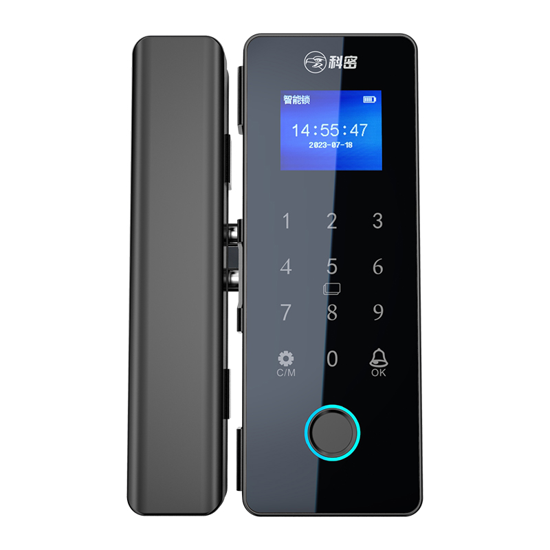 科密玻璃門鎖商鋪雙開門免開孔辦公室鎖有框單開智能單門密碼指紋