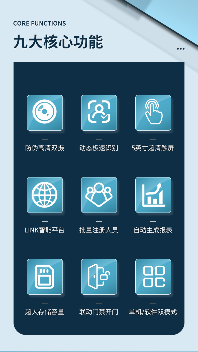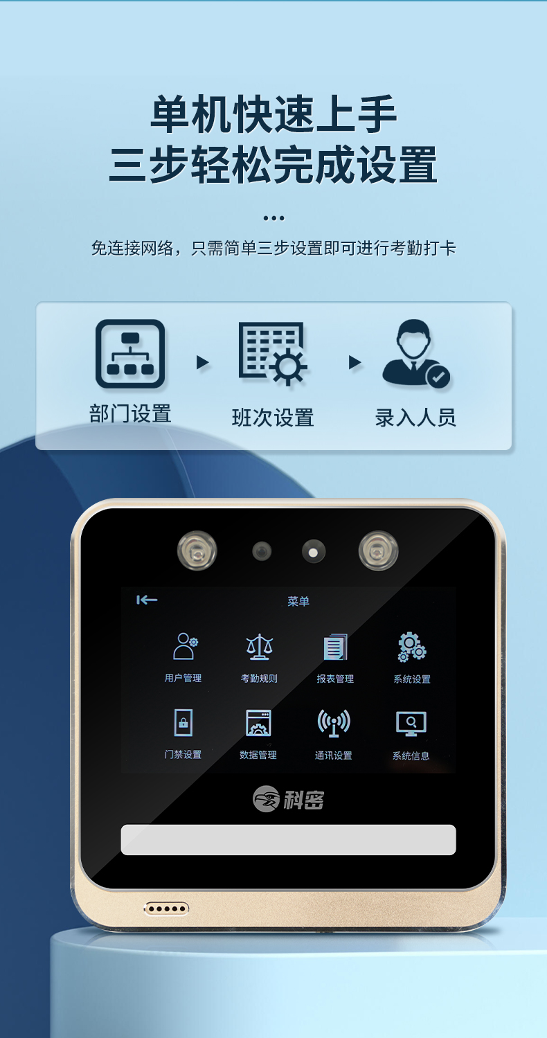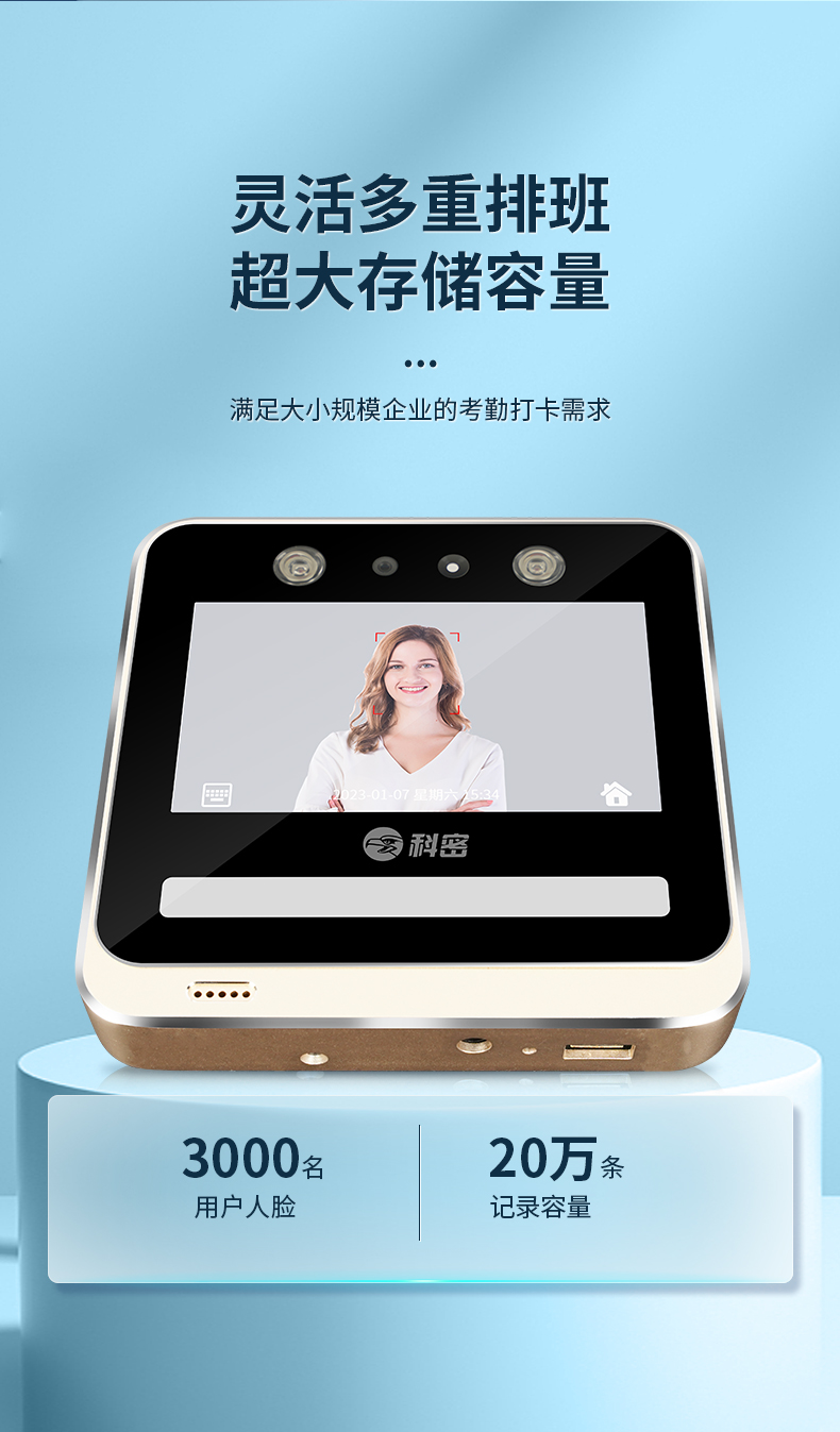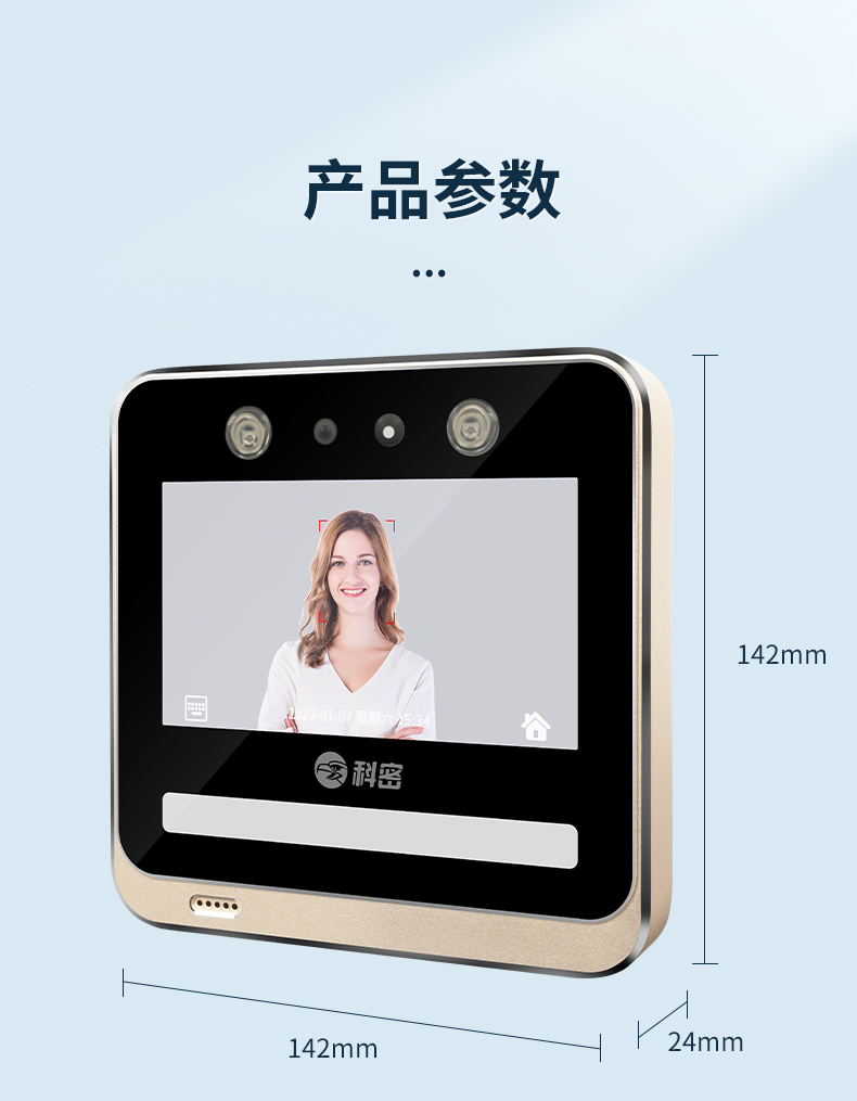 科密(comet) V-03 動態(tài)人臉識別考勤機 無接觸多人同時打卡機 wifi連接 5英寸高清大屏 考勤門禁一體打卡