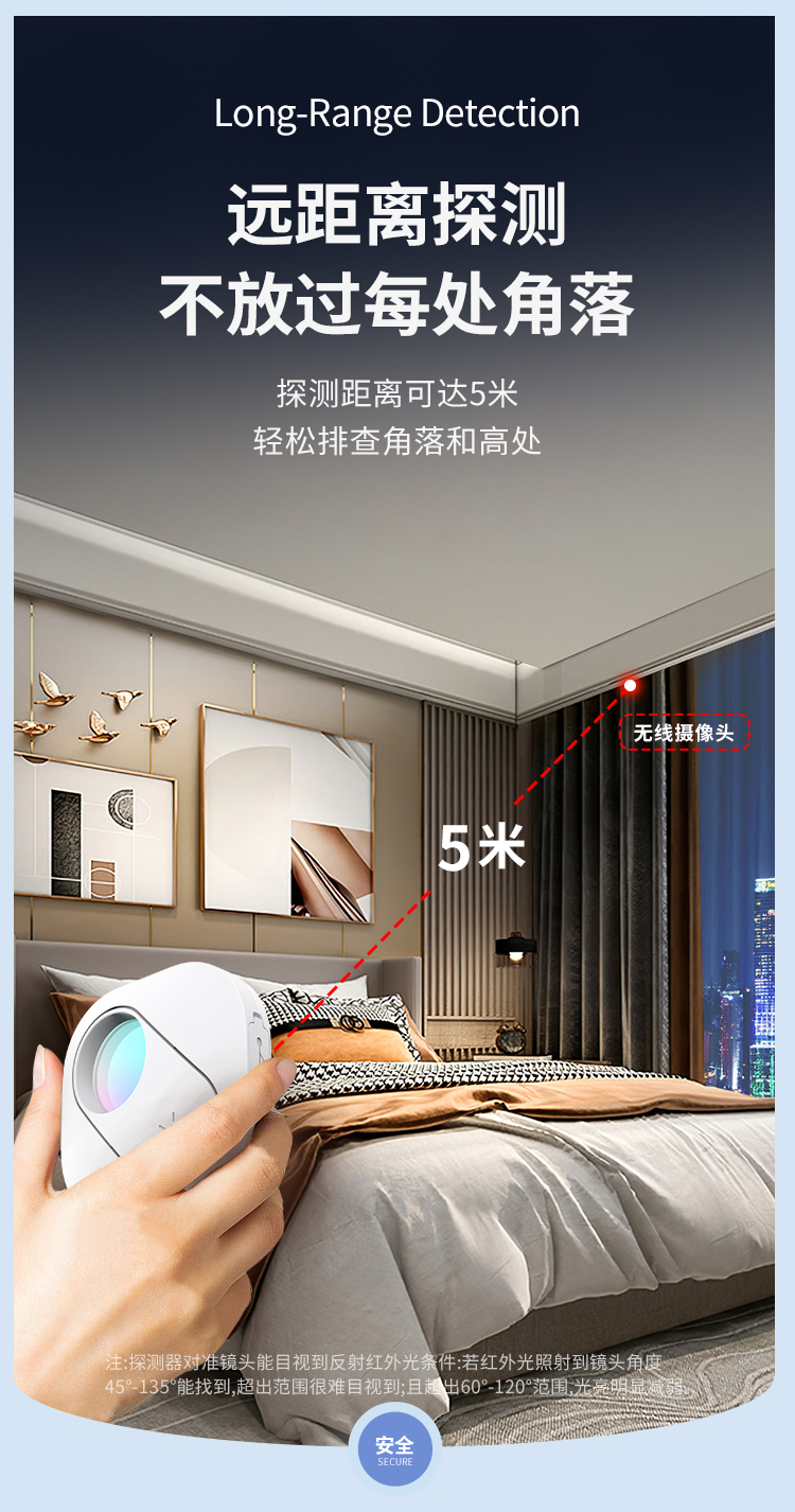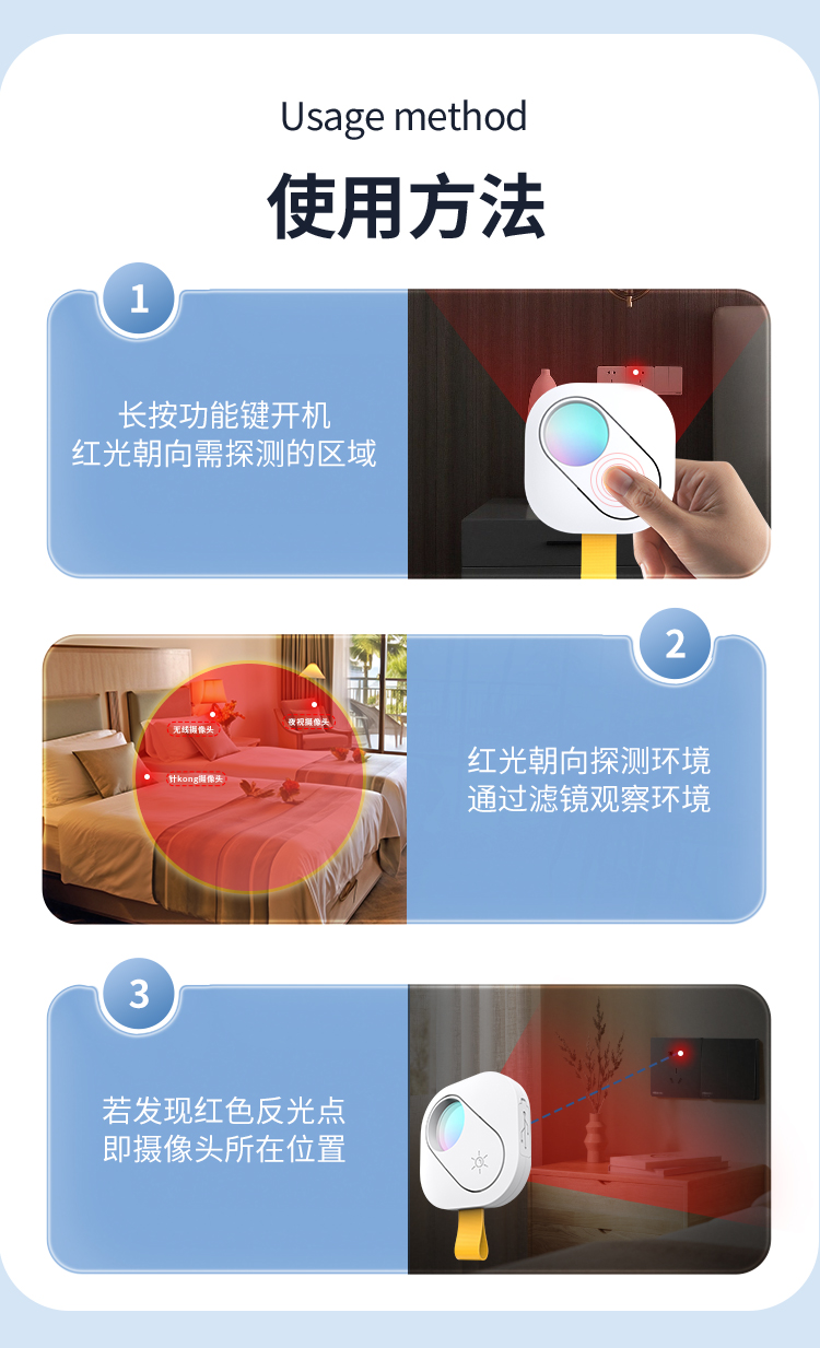 科密KD05 酒店攝像頭探測(cè)器 防拍攝檢測(cè)儀可充電紅外線防監(jiān)控掃描檢測(cè)器 賓館民宿 白色