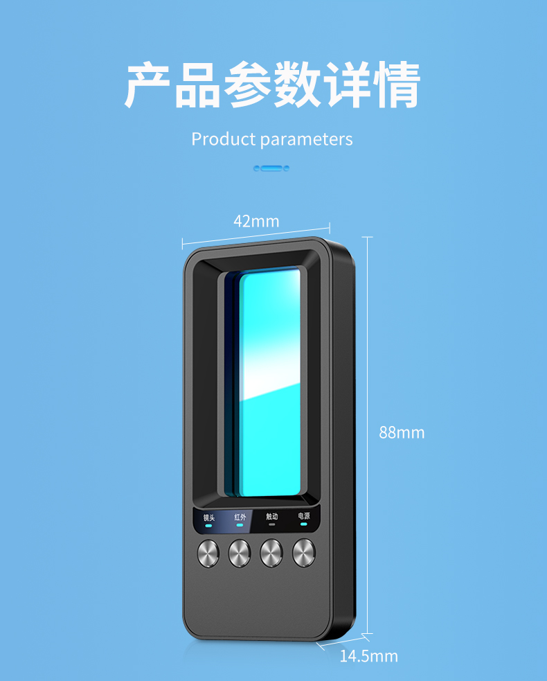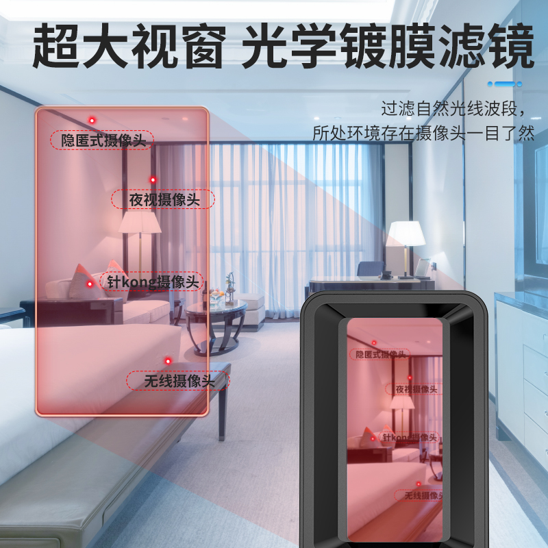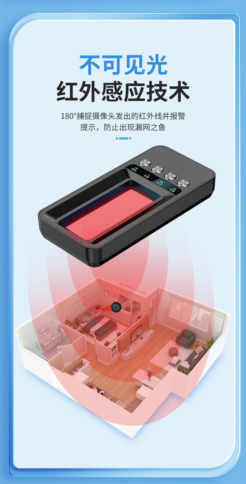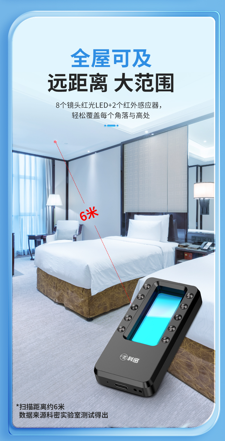 科密攝像頭探測器酒店防偷拍觸動報警紅外線信號探測儀KD10S黑色款