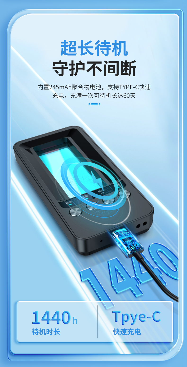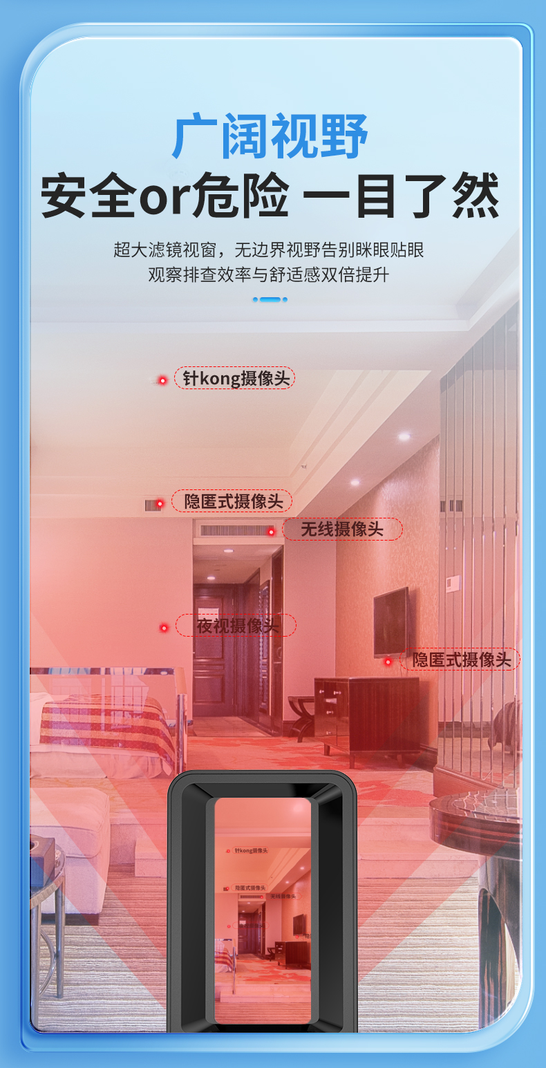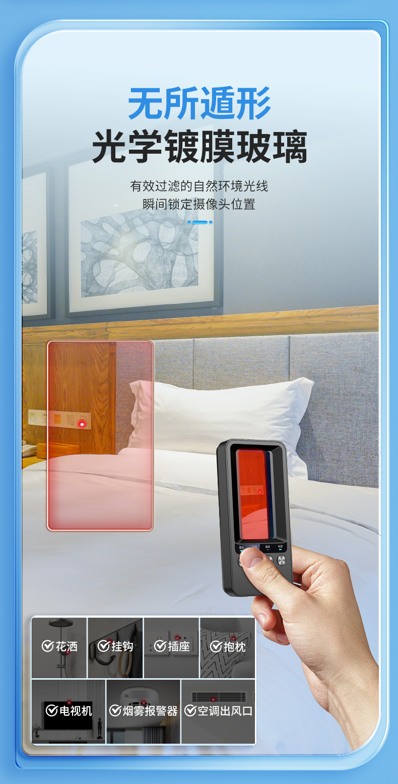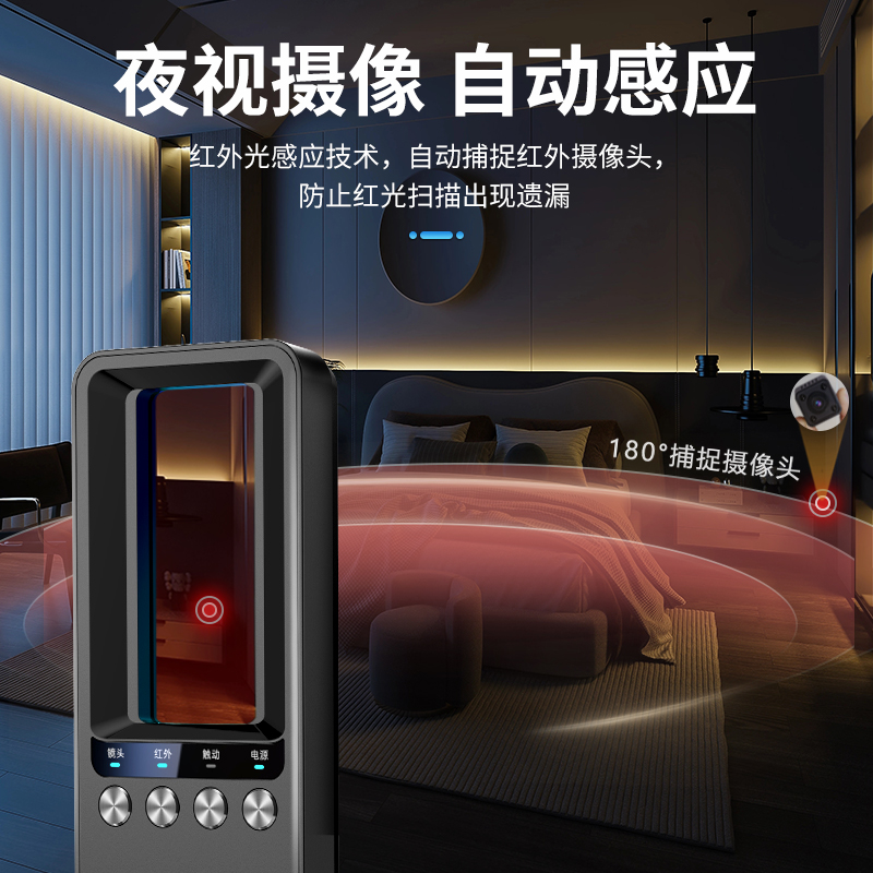 科密攝像頭探測器酒店防偷拍觸動報警紅外線信號探測儀KD10S黑色款