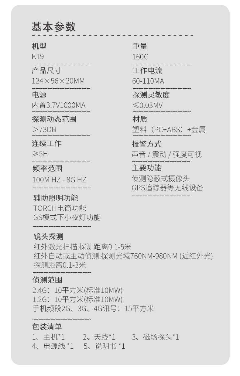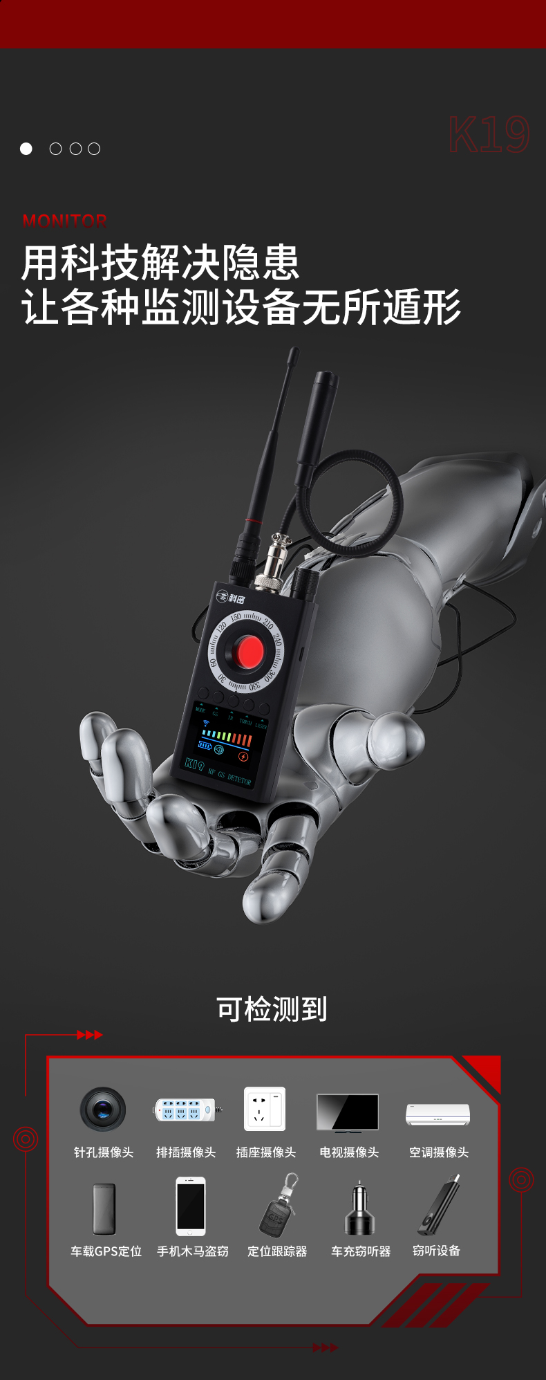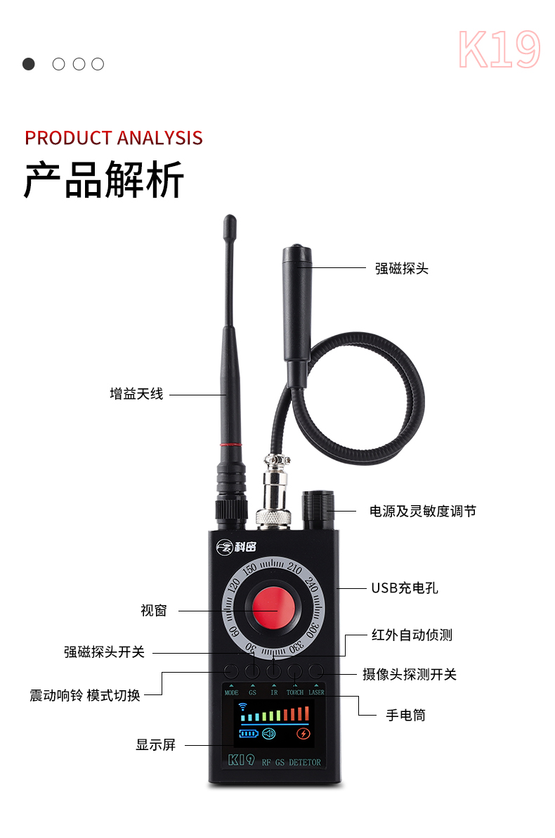 科密攝像頭探測(cè)器酒店防鏡頭偷攝反監(jiān)控竊器防北斗gps跟蹤儀K19