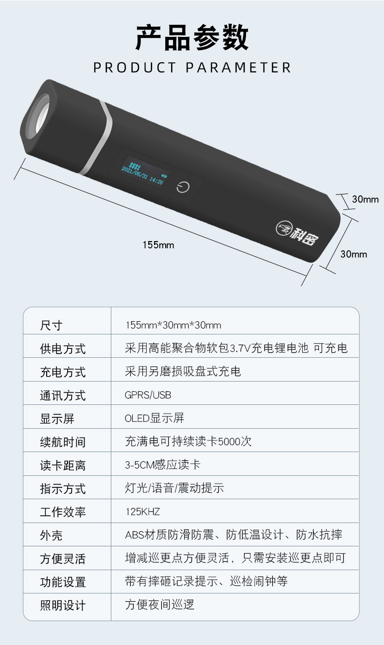 科密CX07 強(qiáng)光照明巡更棒 電子巡更系統(tǒng) 保安巡邏機(jī)巡更器(配15個(gè)巡更點(diǎn)+5個(gè)人員扣)