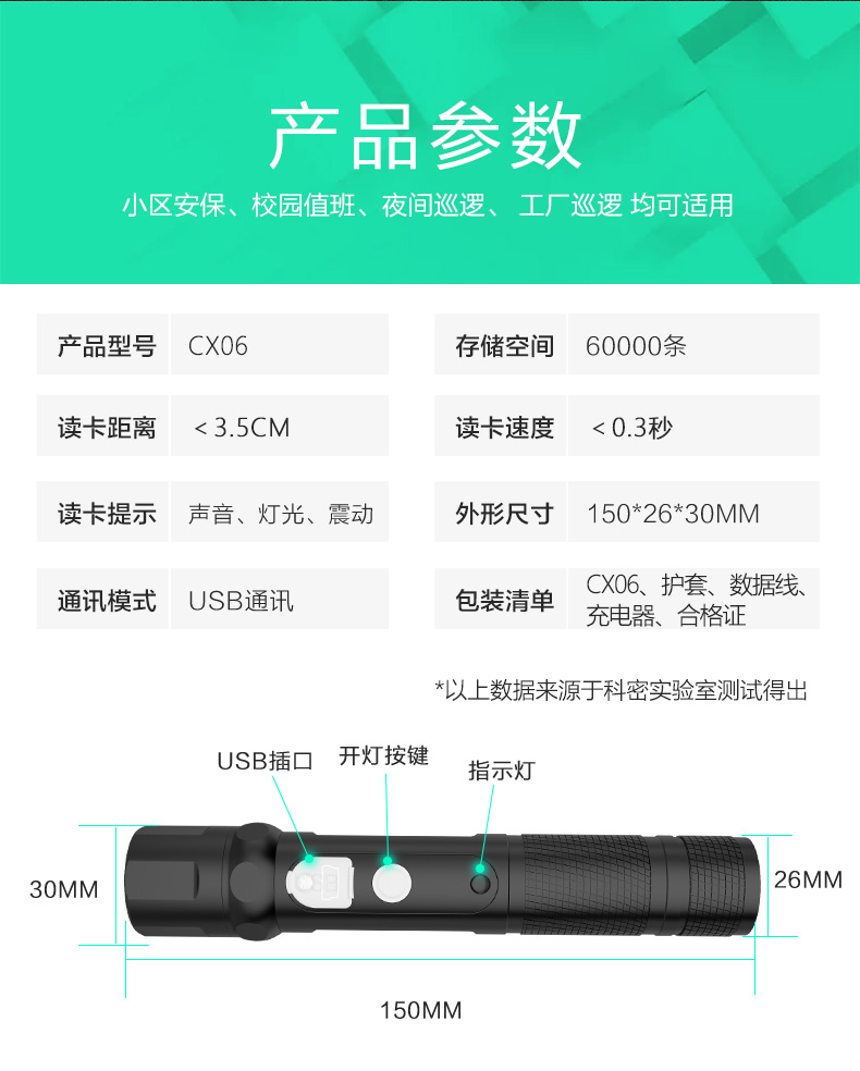 科密CX06 強(qiáng)光照明巡更棒 保安巡邏機(jī)打點(diǎn)機(jī) 電子巡更系統(tǒng)巡更機(jī)(配15個巡更點(diǎn)+5個人員扣)