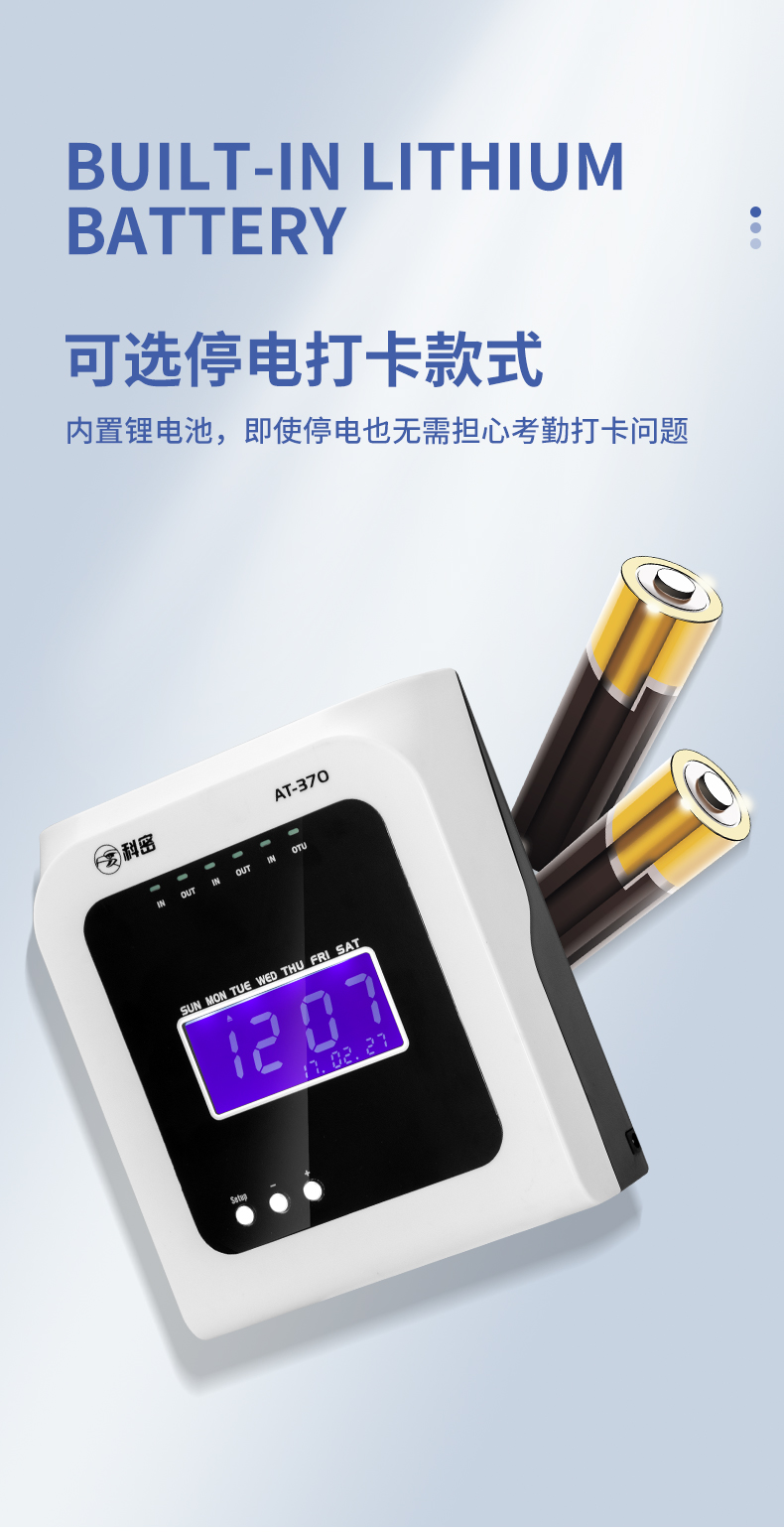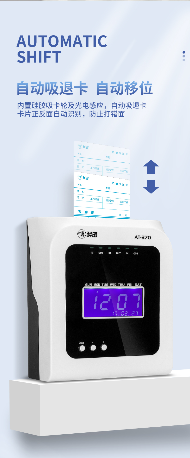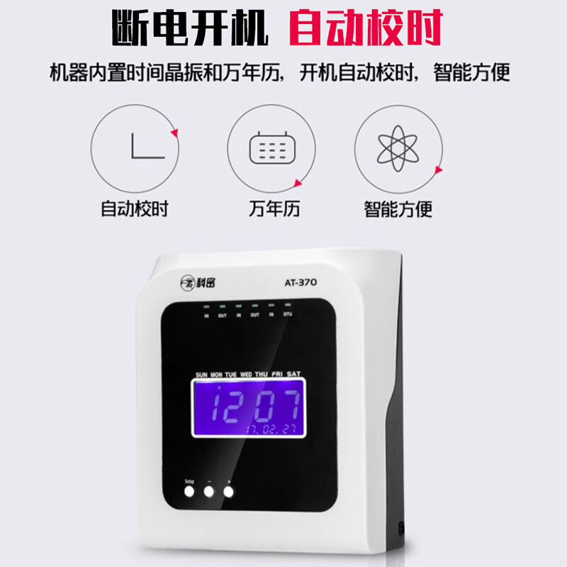 科密熱敏打卡機(jī)紙卡式卡片考勤機(jī)卡紙打卡機(jī)員工上下班出勤工廠工地企業(yè)簽到鐘打卡鐘插卡式AT370