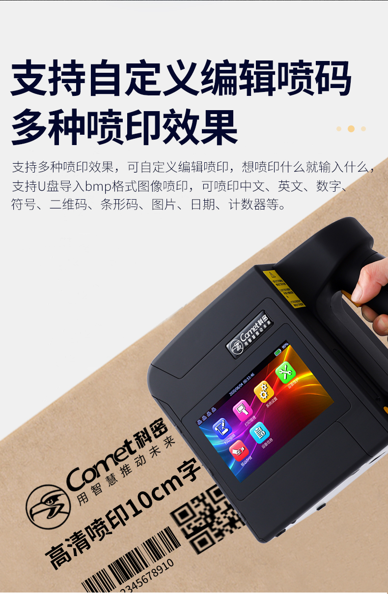 科密M6手持式噴碼機(jī)墨盒中大型便攜打碼機(jī)日期條碼二維碼圖標(biāo)大字符自動(dòng)噴碼水性