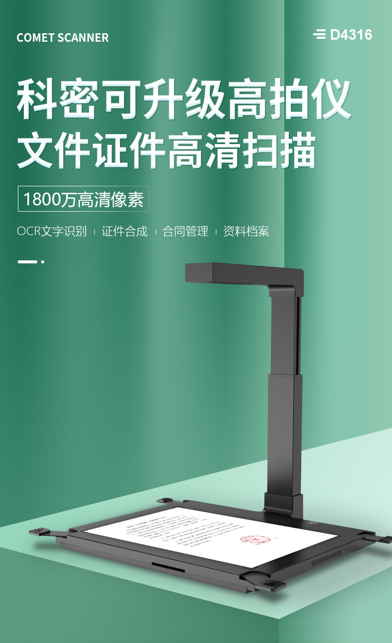 科密(comet) D4316 高拍儀 1800萬(wàn)像素掃描儀 A3A4辦公文檔資料編輯優(yōu)化 OCR識(shí)別 統(tǒng)信麒麟國(guó)產(chǎn)系統(tǒng)二次開(kāi)發(fā)
