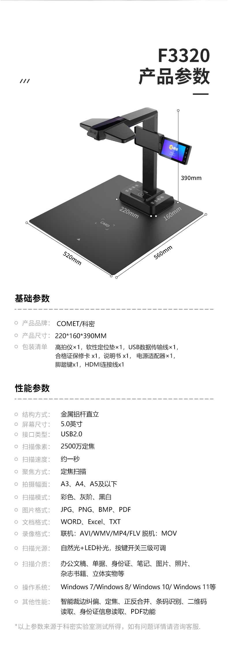 科密 F3320 高拍儀 2500萬高清像素 A3A4書籍曲面展平 OCR掃描儀 預(yù)覽屏 HDMI 可二次開發(fā) 軍隊(duì)軍采指定機(jī)型