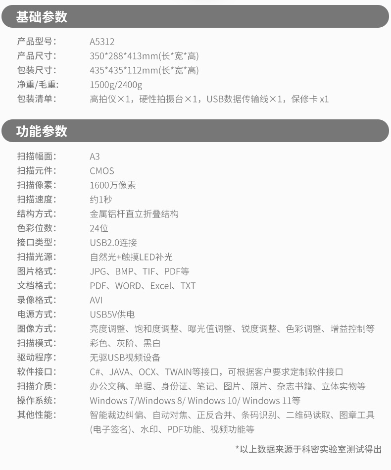 科密(comet) A5312 高拍儀 1600萬像素掃描儀 A3A4文件資料照片存檔 OCR識別