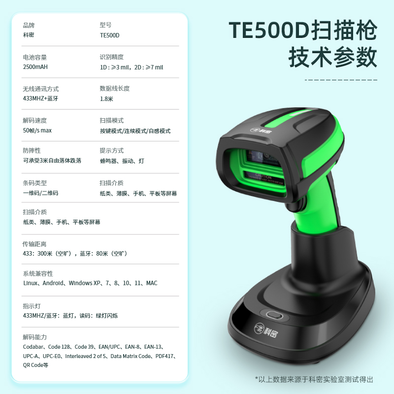 科密(comet)掃描槍無線藍牙掃碼槍一二維掃碼器 超市餐飲收銀倉庫物流盤點 帶座TE500D 支持國產(chǎn)系統(tǒng)