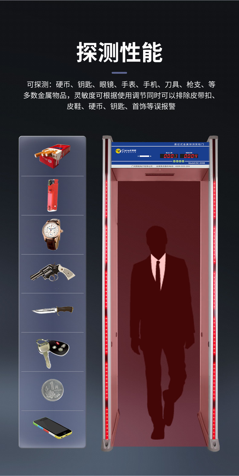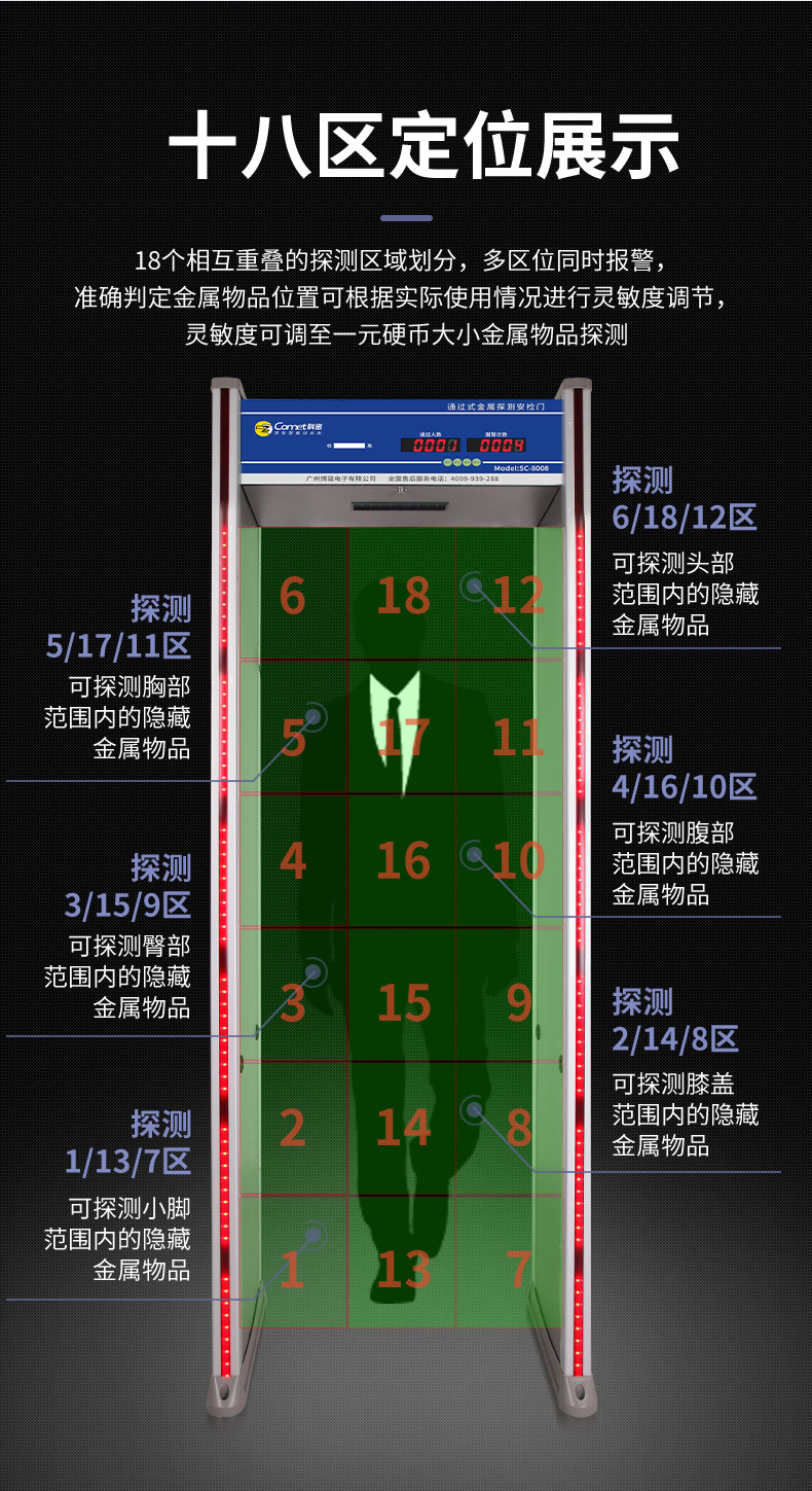科密安檢門金屬探測門六區(qū)檢測工廠防盜手機車站學校公檢法SC-8008