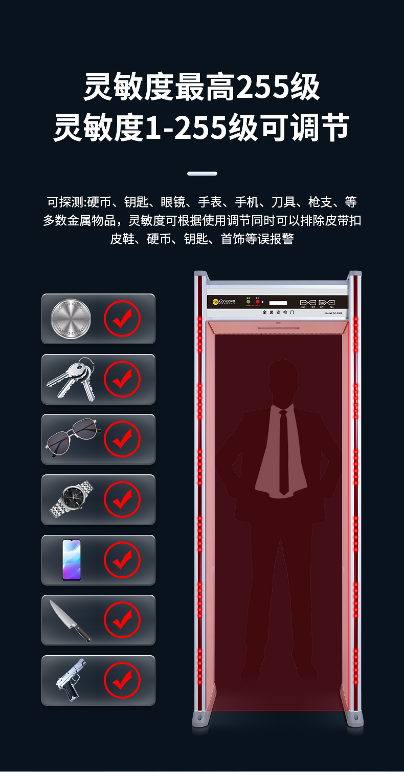 科密安檢門金屬探測門六區(qū)檢測工廠防盜手機(jī)車站學(xué)校公檢法SC-8028
