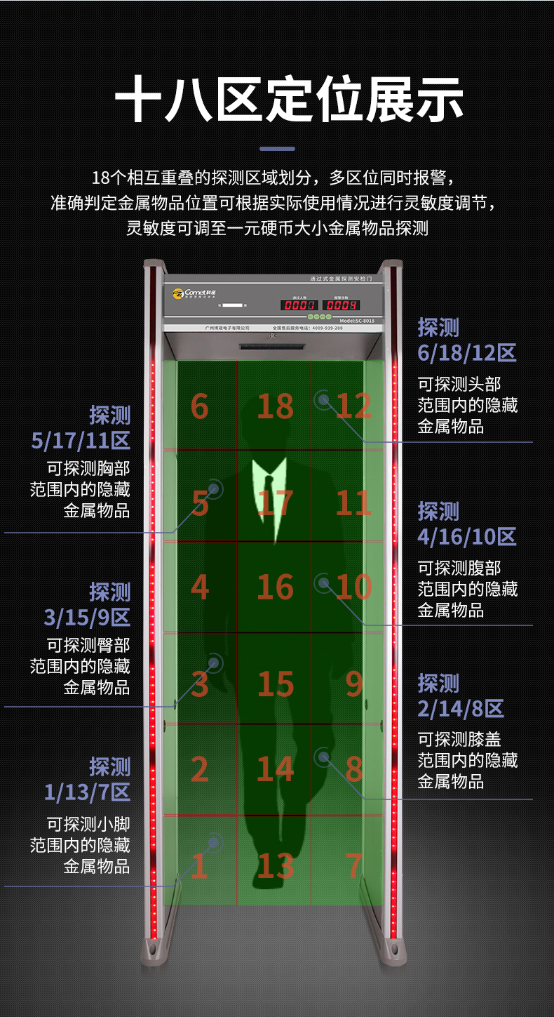 科密安檢門金屬探測(cè)門十八區(qū)檢測(cè)手機(jī)工廠防盜室學(xué)校公檢法SC-8018