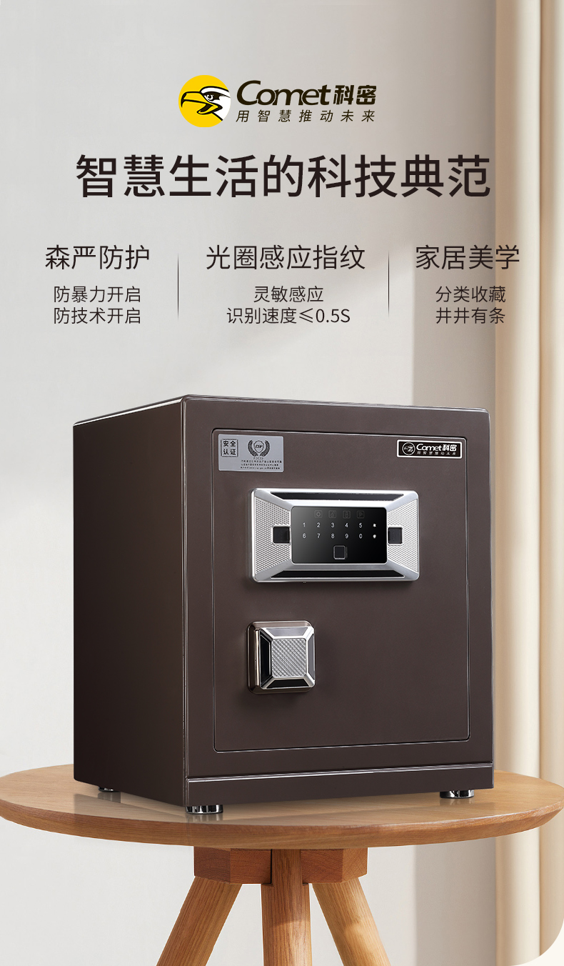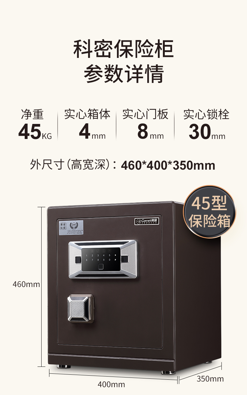 科密 FDG-45Zs全鋼辦公家用指紋密碼保險箱 輕奢灰 45CM
