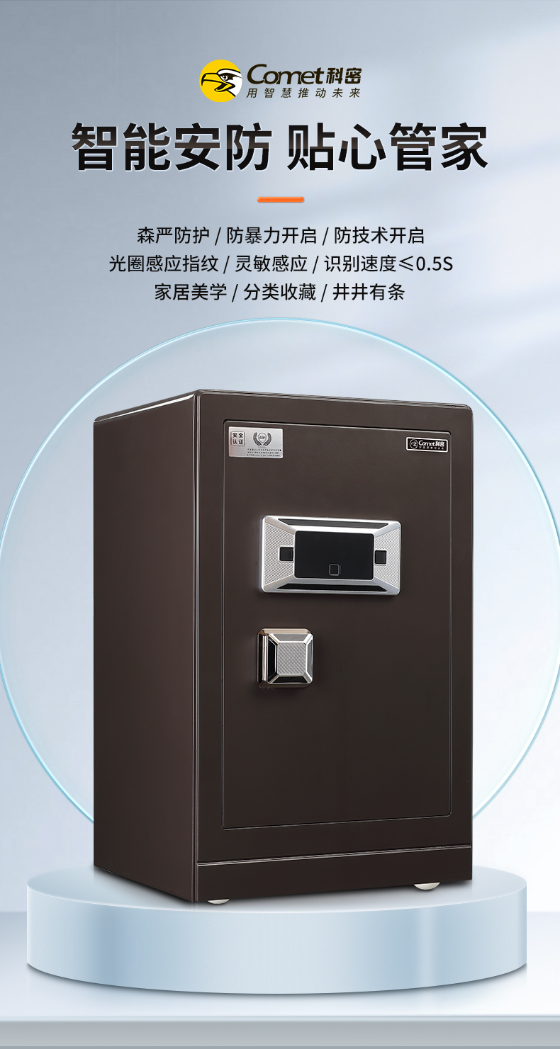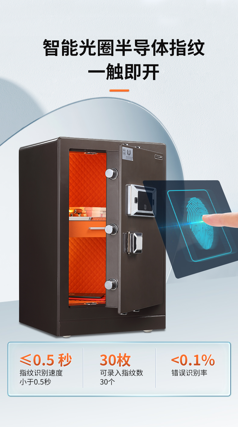 科密 FDG-70Zs全鋼辦公家用指紋密碼保險柜輕奢灰 高70CM