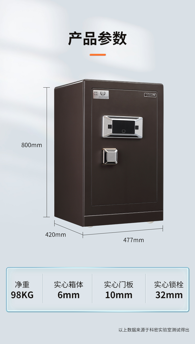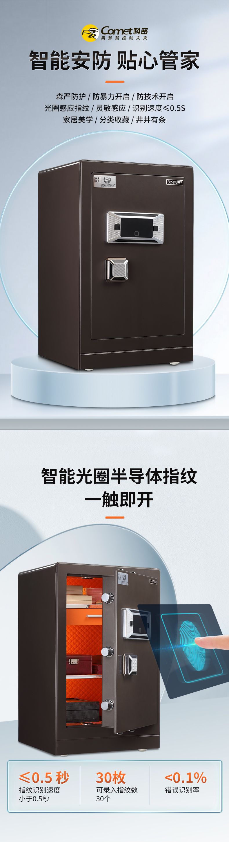 科密 FDG-80Zs全鋼辦公家用指紋密碼保險(xiǎn)柜輕奢灰 高80CM