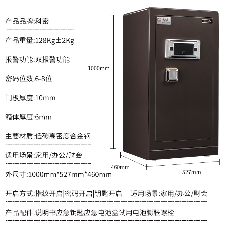 科密 FDG-100Zs全鋼辦公家用指紋密碼保險(xiǎn)柜輕奢灰 高100CM