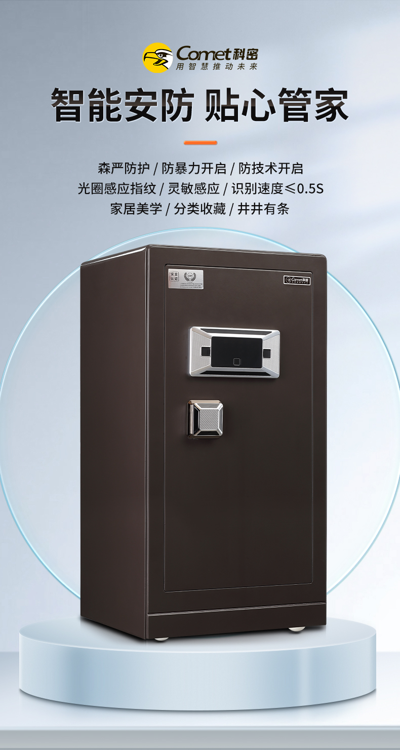 科密 FDG-120Zs全鋼辦公家用商用指紋密碼保險(xiǎn)柜輕奢灰 高120CM