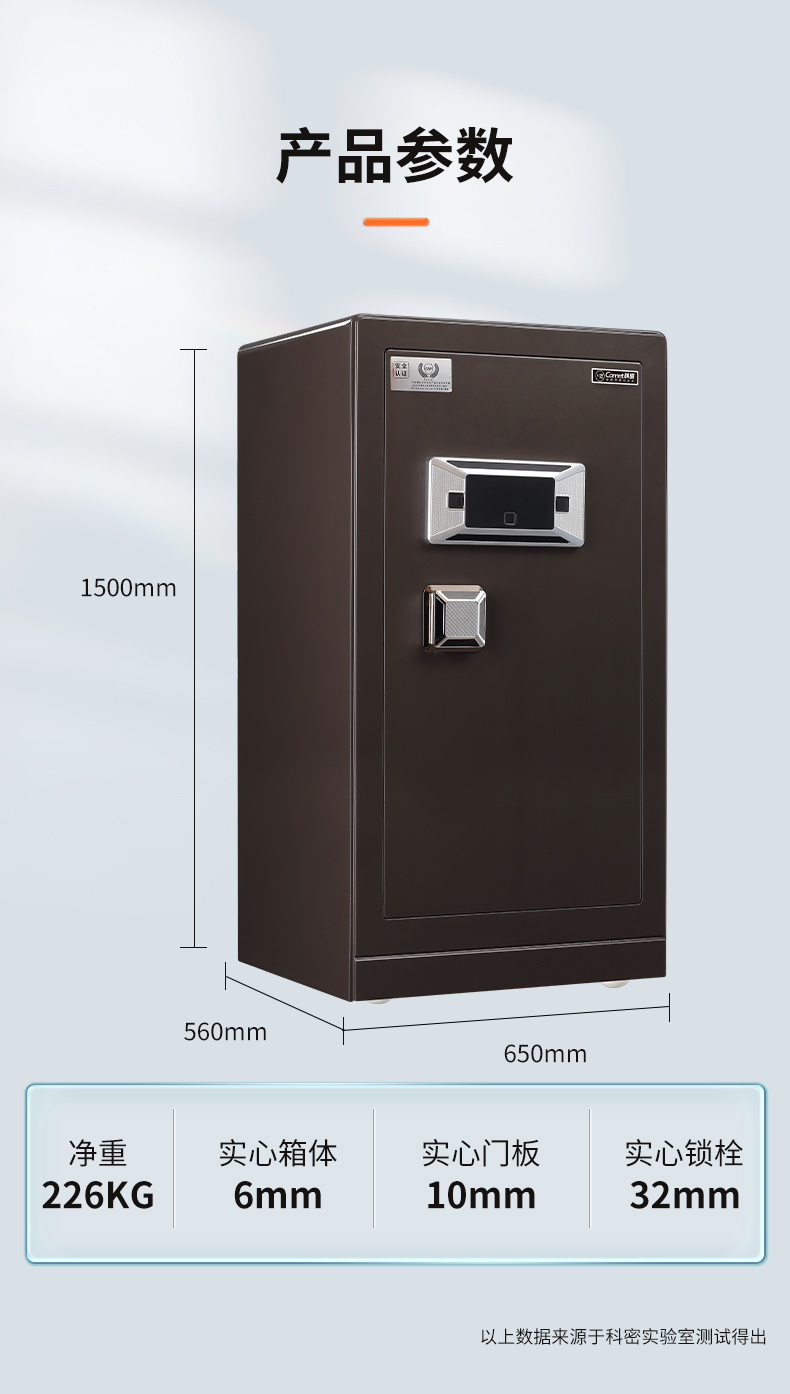 科密 FDG-150Zs全鋼辦公家用商用指紋密碼保險柜 輕奢灰 高150CM