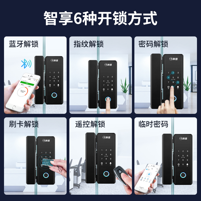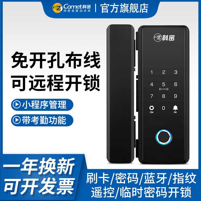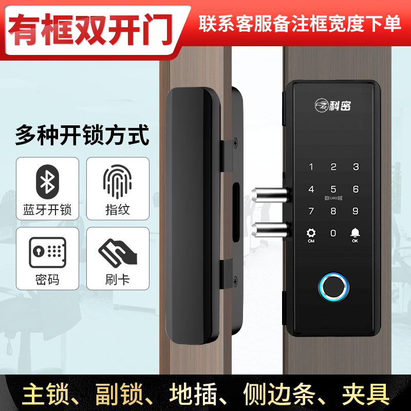 科密玻璃門(mén)鎖商鋪雙開(kāi)門(mén)免開(kāi)孔辦公室鎖有框單開(kāi)智能單門(mén)密碼指紋