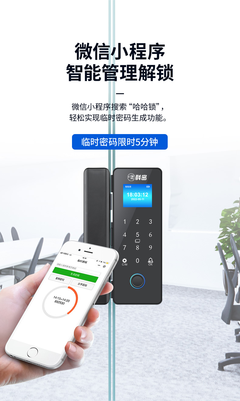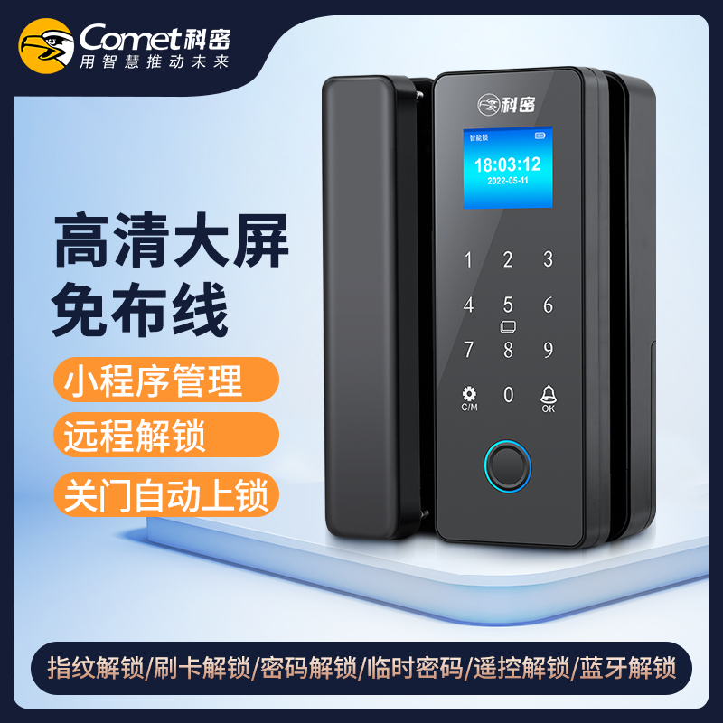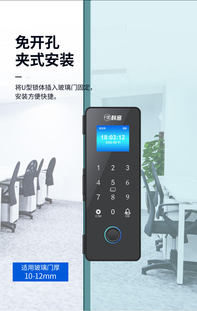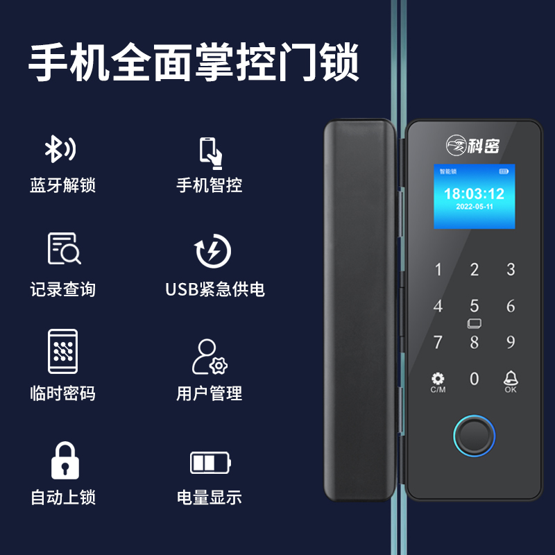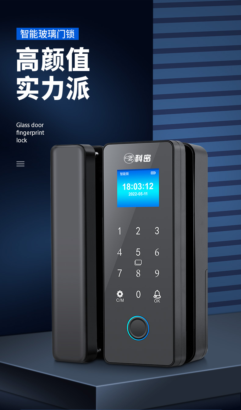 科密玻璃門鎖商鋪雙開門免開孔辦公室鎖有框單開智能單門密碼指紋