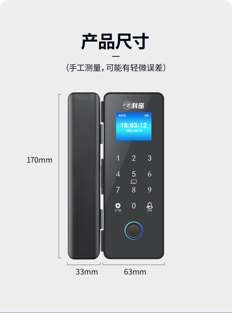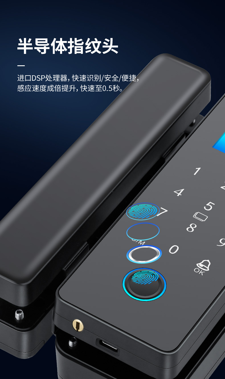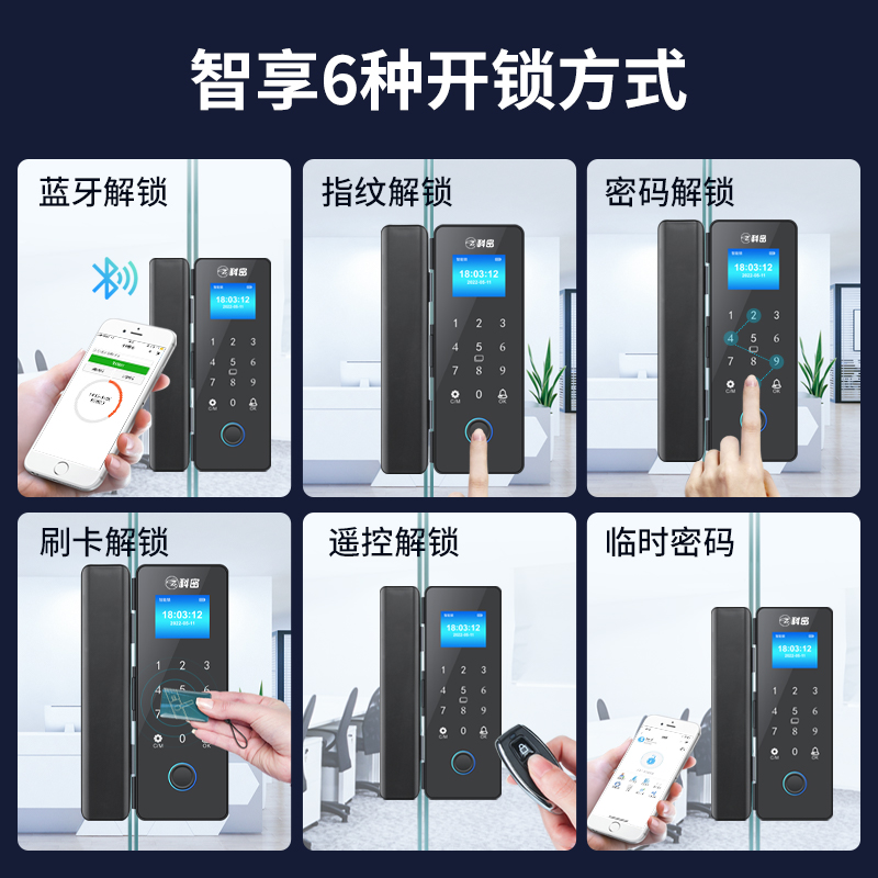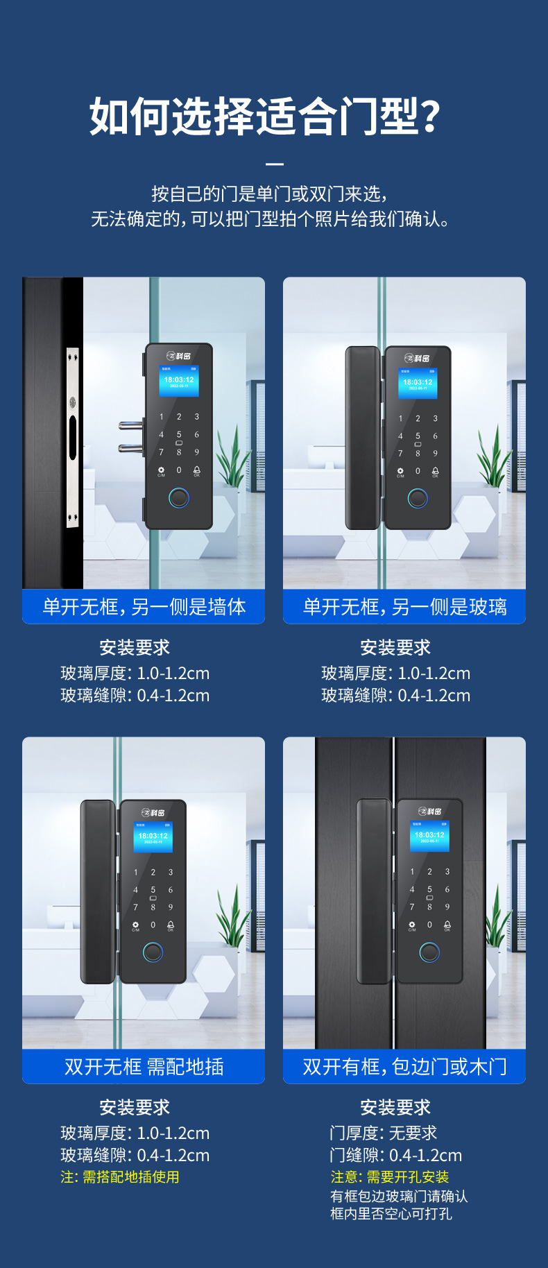 科密玻璃門鎖商鋪雙開門免開孔辦公室鎖有框單開智能單門密碼指紋