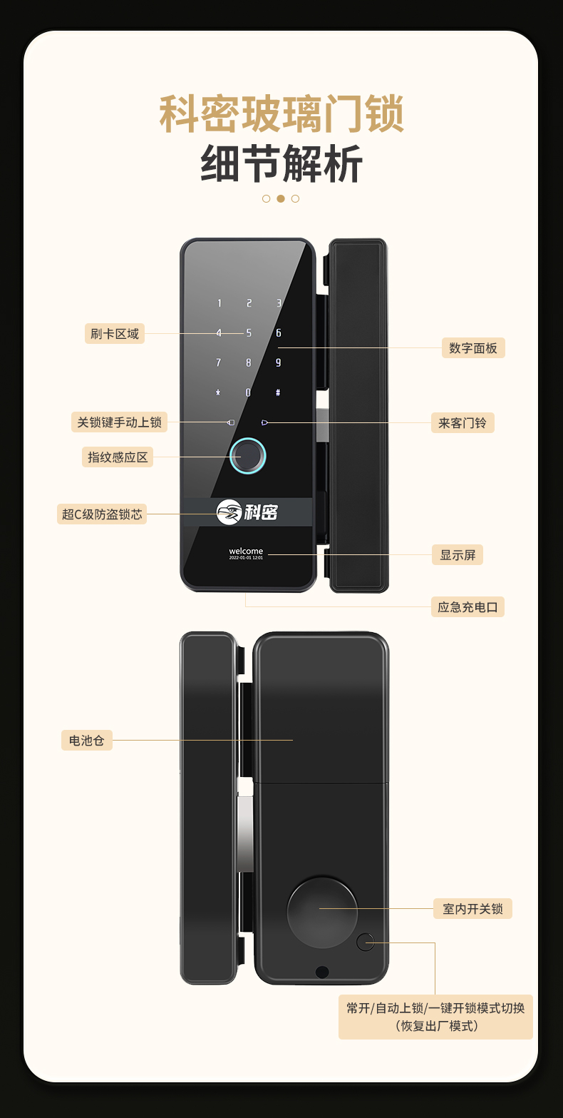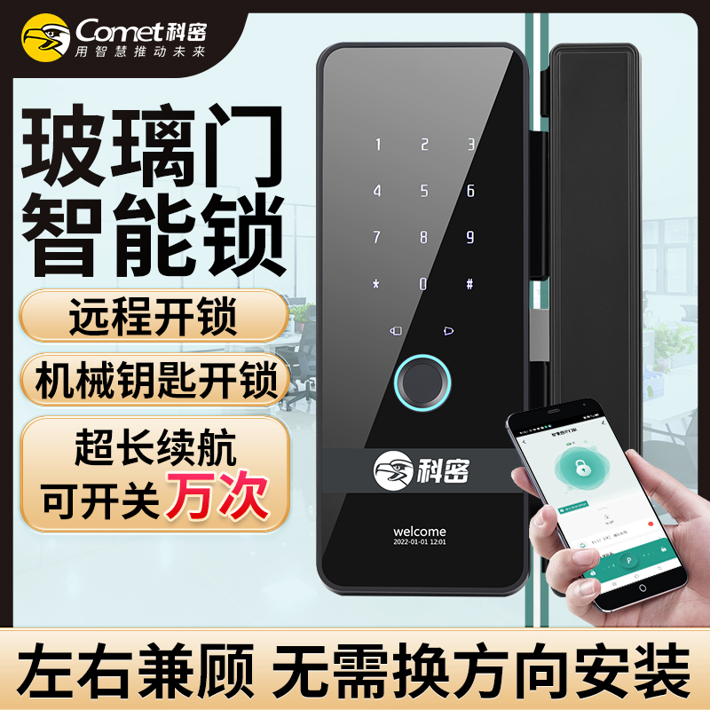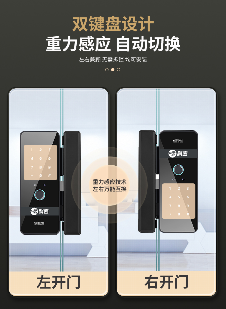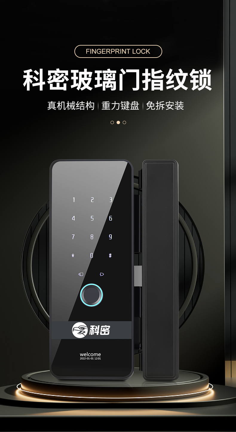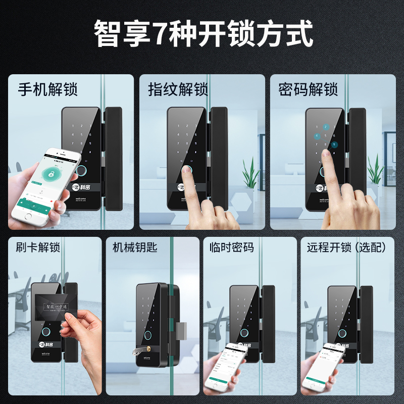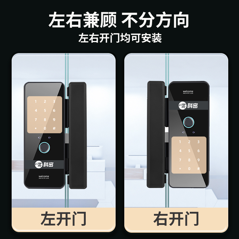 科密智能鎖指紋鎖公司有框密碼鎖辦公室電子鎖玻璃門鎖商鋪雙開門