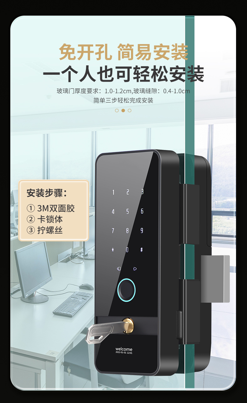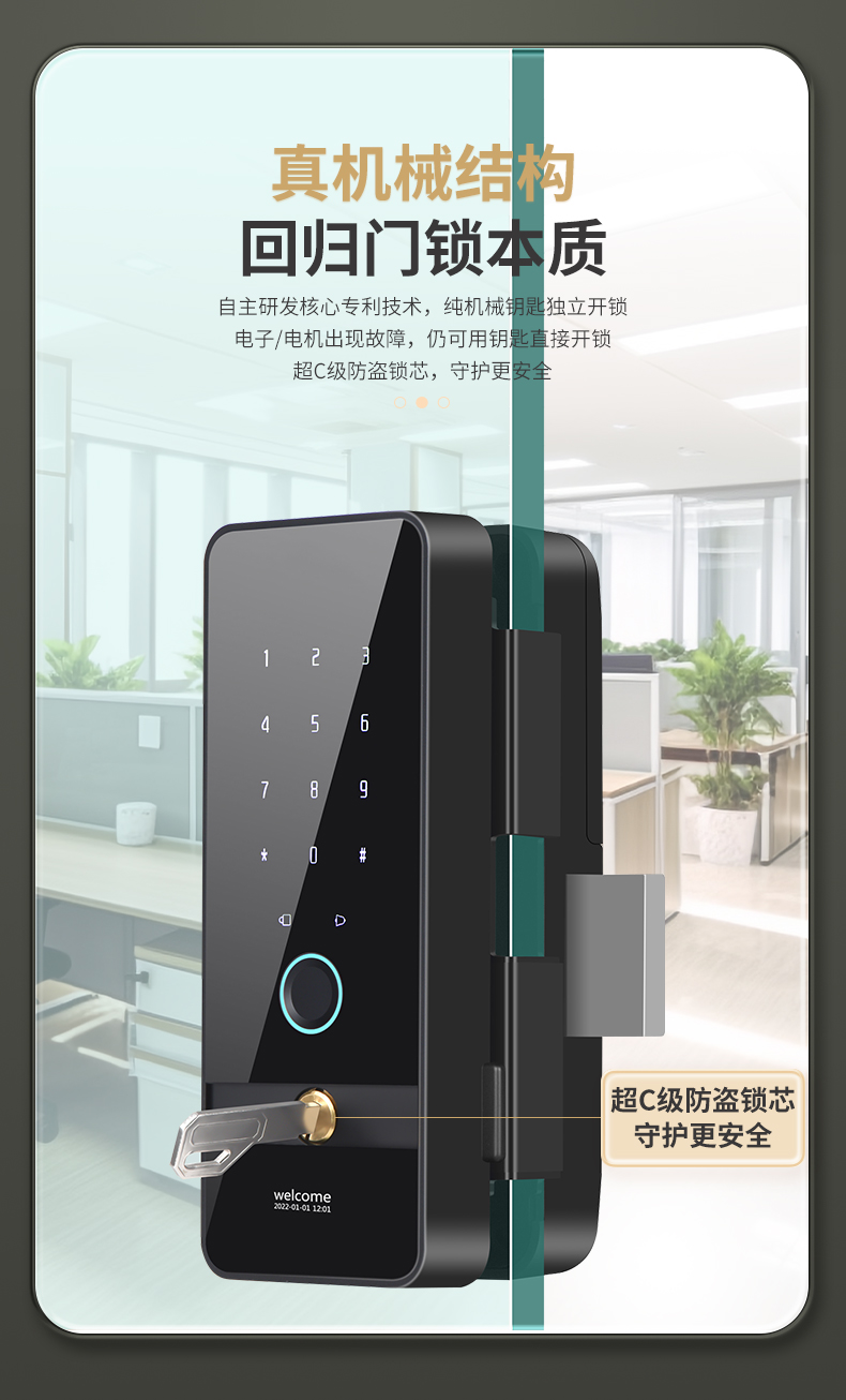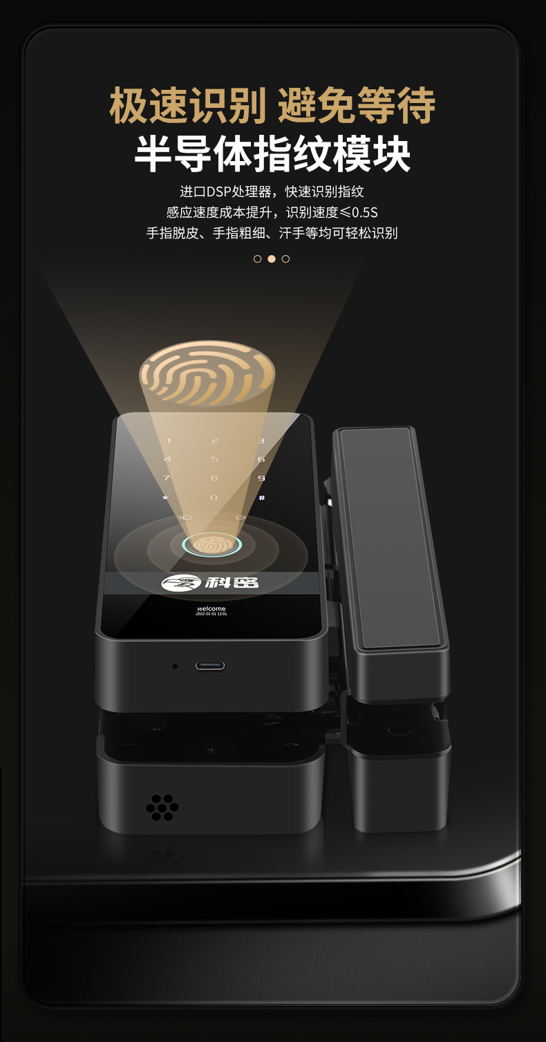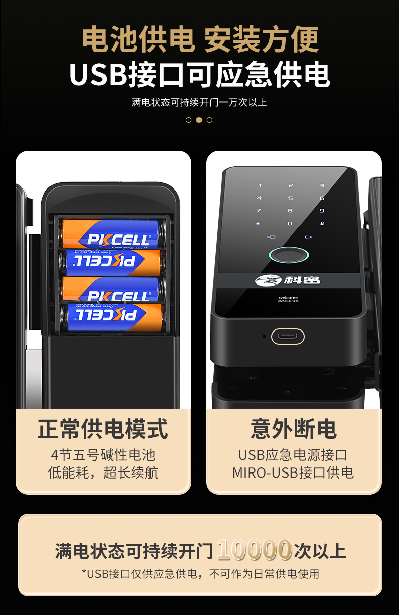 科密智能鎖指紋鎖公司有框密碼鎖辦公室電子鎖玻璃門鎖商鋪雙開門