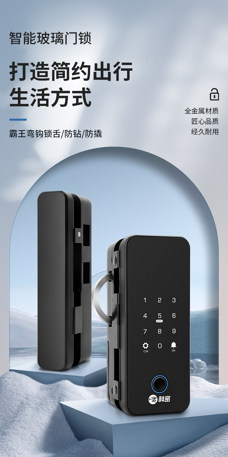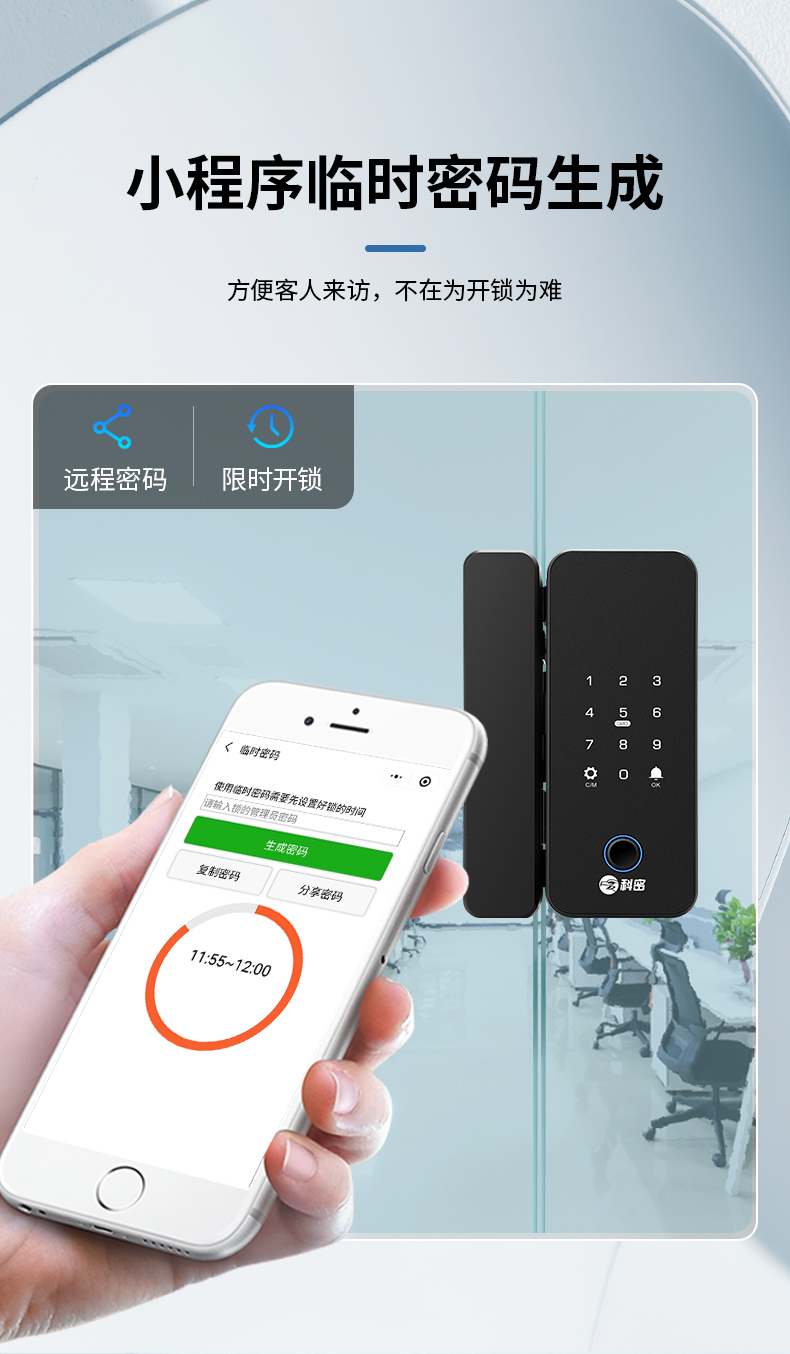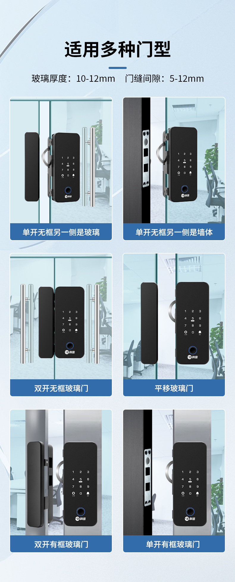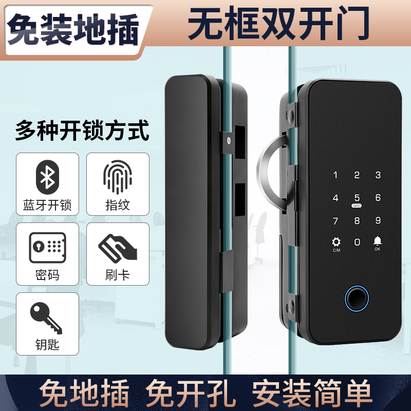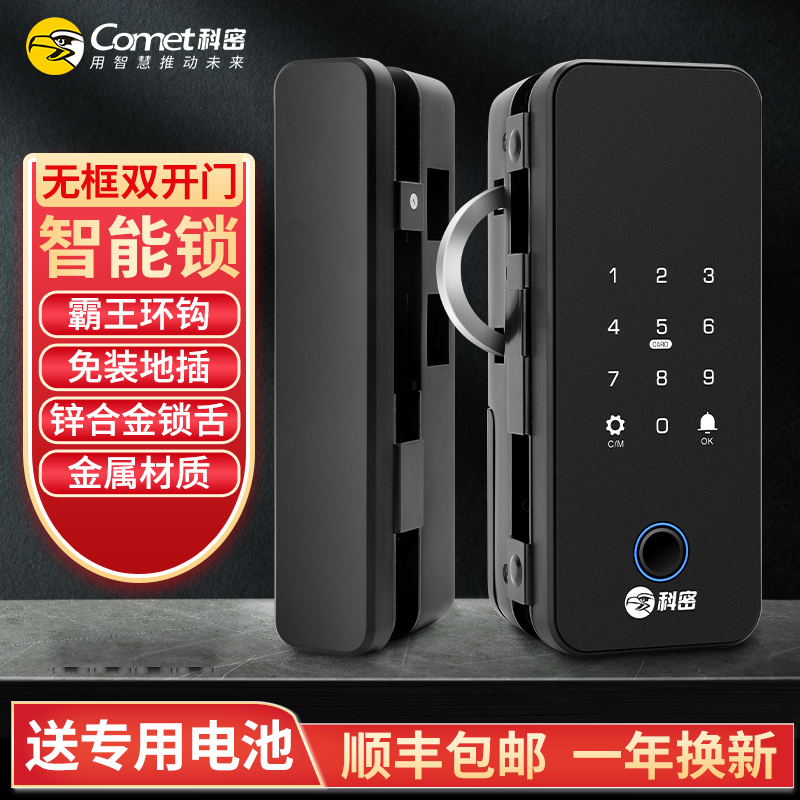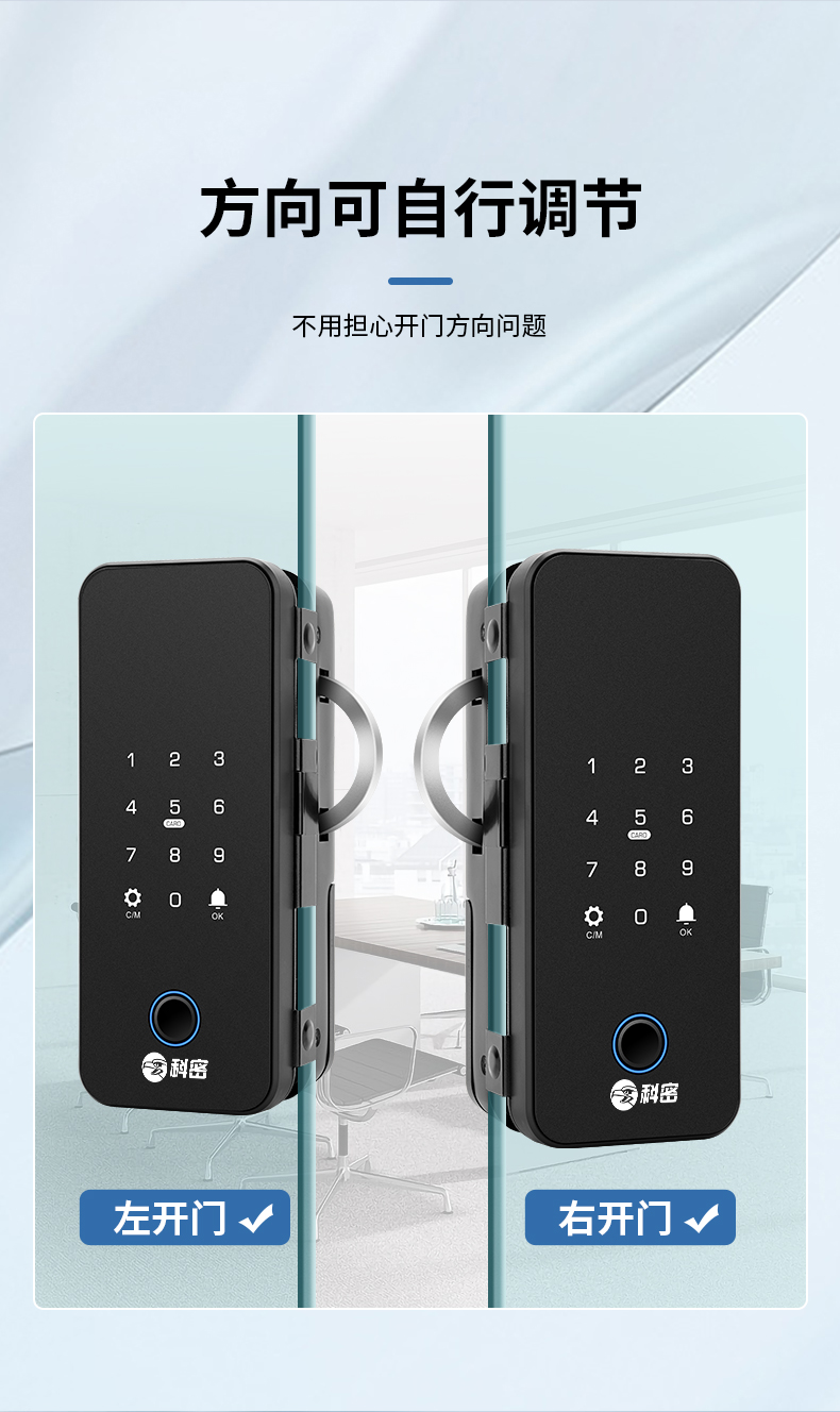 科密智能鎖指紋鎖公司有框密碼鎖辦公室電子鎖玻璃門鎖商鋪雙開門