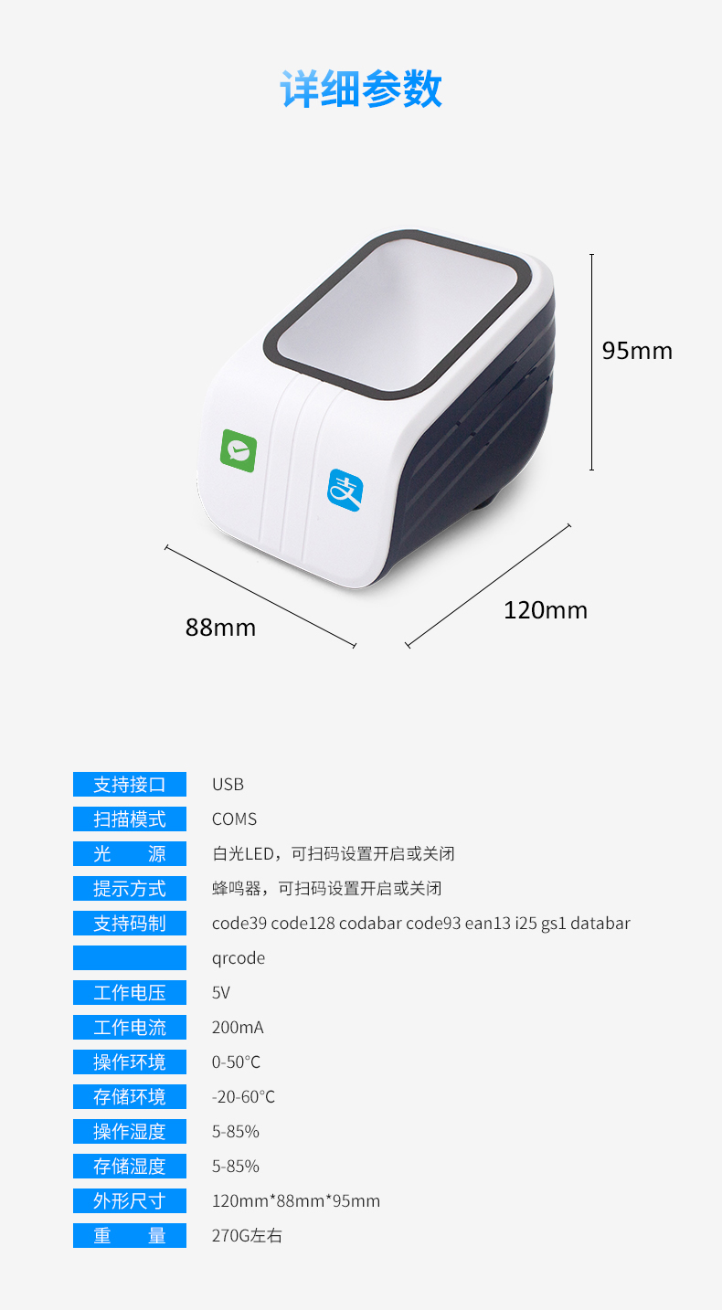 科密P20二維碼掃描器超市收銀掃碼器掃碼支付盒子微信支付寶收錢盒收錢器掃描平臺(tái)掃碼墩