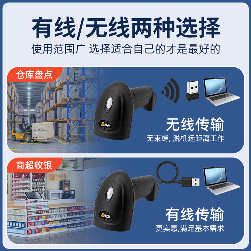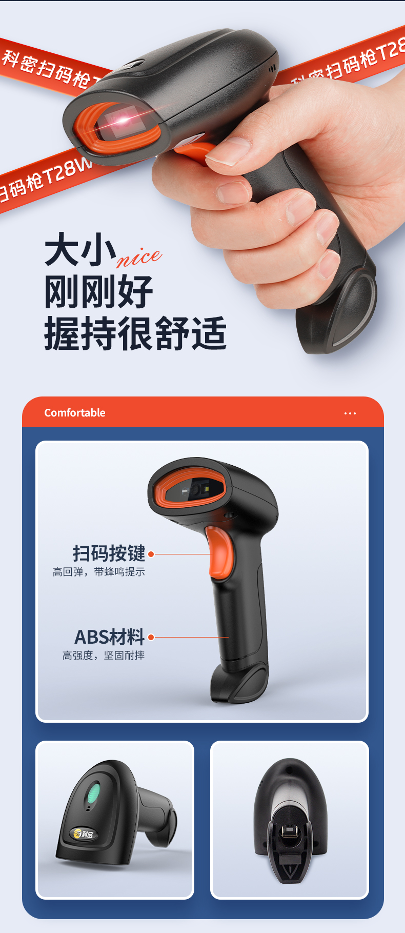 科密T28W無線掃碼槍條碼掃描器超市手機(jī)支付寶微信收銀二維碼掃描槍快遞物流倉儲把槍有線醫(yī)保電子憑證掃碼器