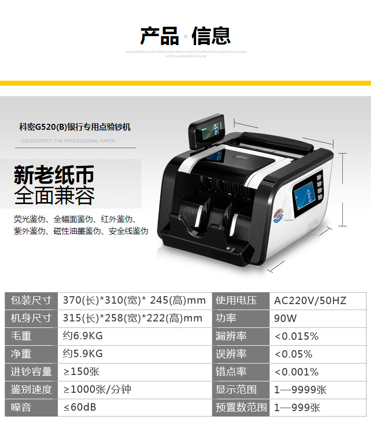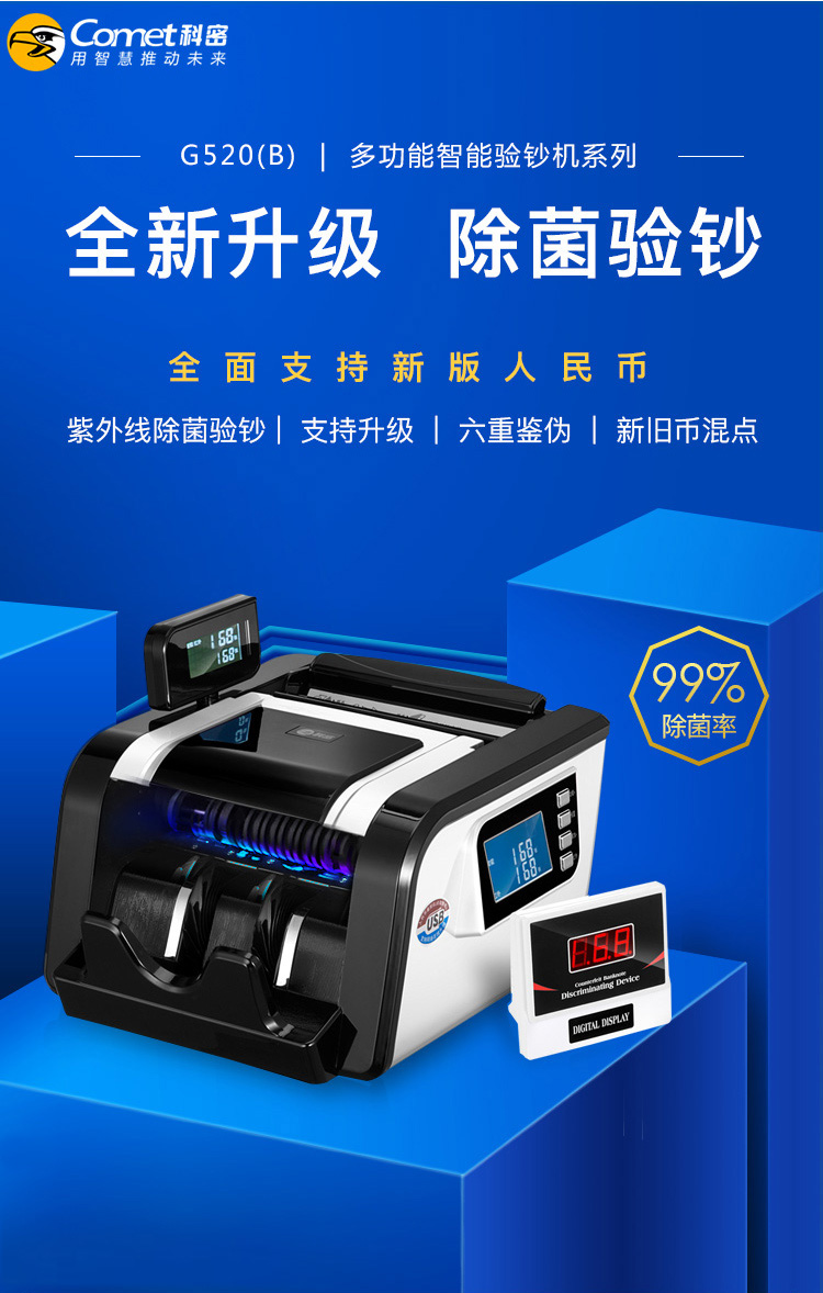 科密(comet)新版人民幣驗(yàn)鈔點(diǎn)鈔機(jī) 銀行家用商用專用國標(biāo)B類點(diǎn)鈔數(shù)錢機(jī) 三屏智能語音可新舊混點(diǎn)G520