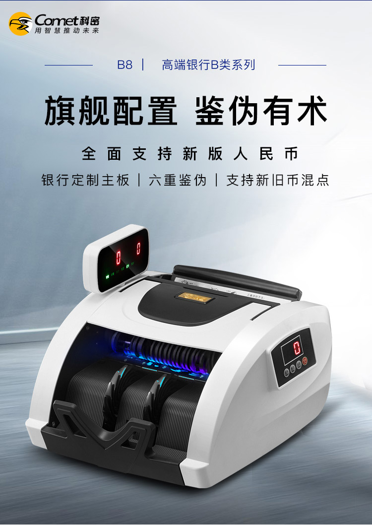 科密(comet)新版人民幣驗鈔點鈔機(jī) 國標(biāo)B類點鈔機(jī)銀行專用商用 智能語音雙屏新舊混點 B8