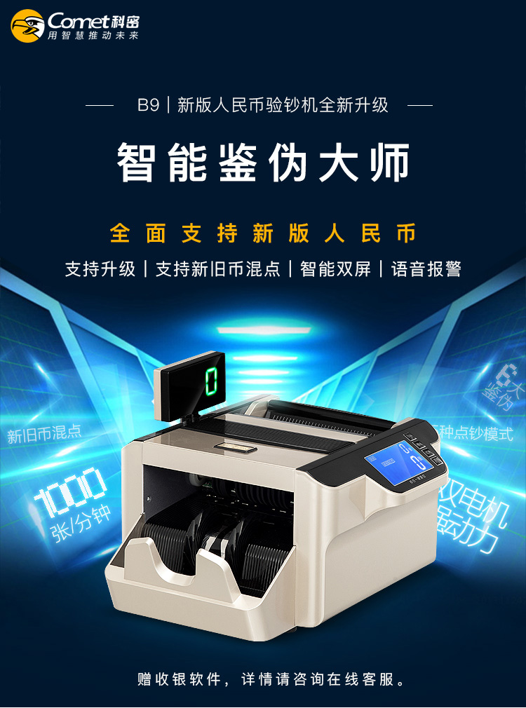 科密(comet)新版人民幣驗鈔點鈔機 國標B類點鈔機 銀行可用商用 新舊幣混點雙屏語音 B9