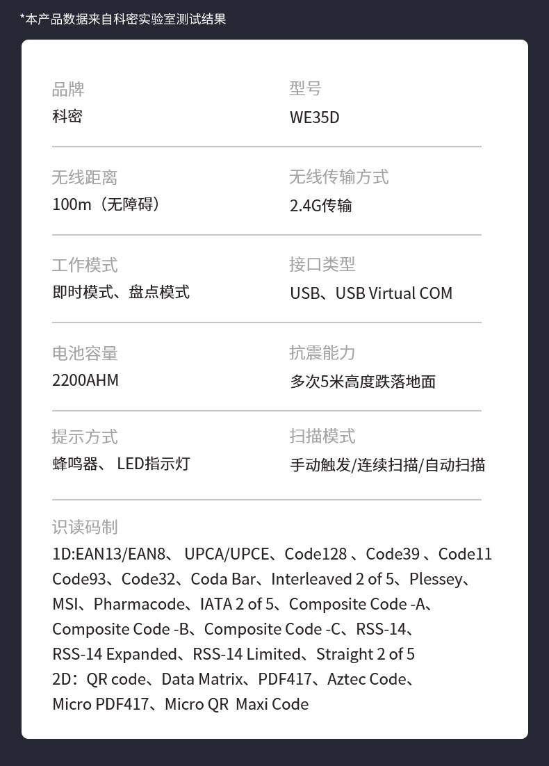 科密(comet) WE35D 無線一二維碼帶座條碼槍掃描槍掃碼槍 工業(yè)防水防塵防油污金屬DPM碼 支持國產(chǎn)系統(tǒng)