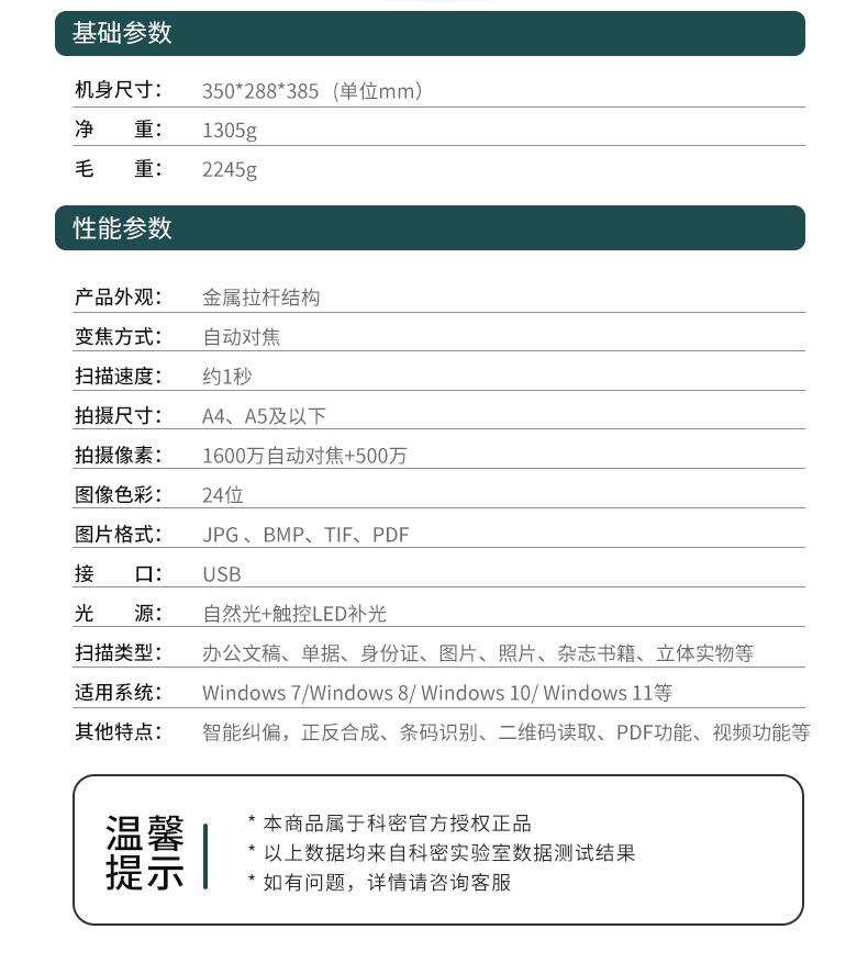 科密(comet) D4412 高拍儀 1600萬+500萬雙攝 掃描儀 A4幅面OCR識別