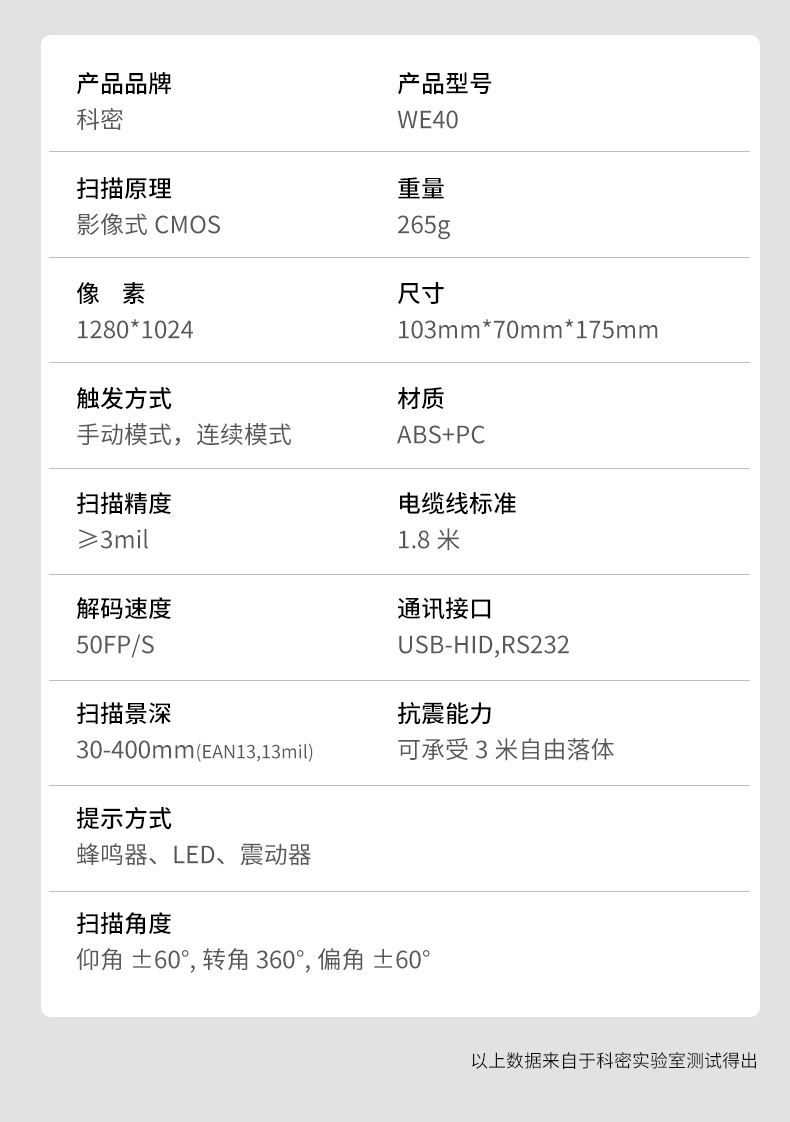 科密(comet)WE40掃碼槍工業(yè)掃描槍 有線一二維碼條碼槍 高精度微小碼金屬碼 車(chē)間制造倉(cāng)儲(chǔ)商超收銀
