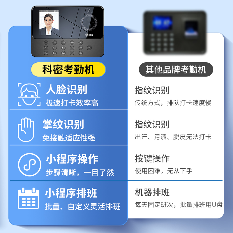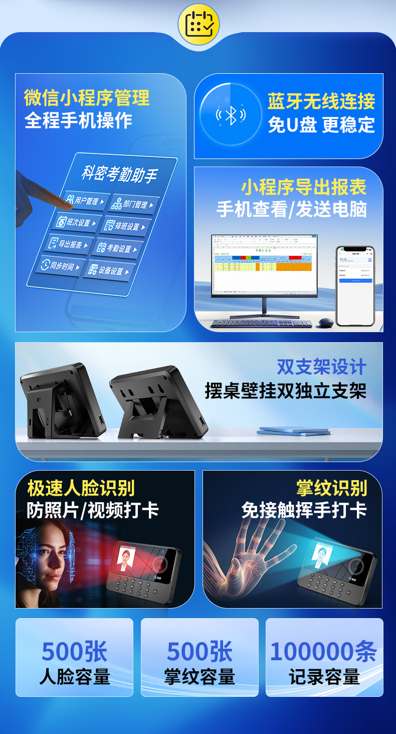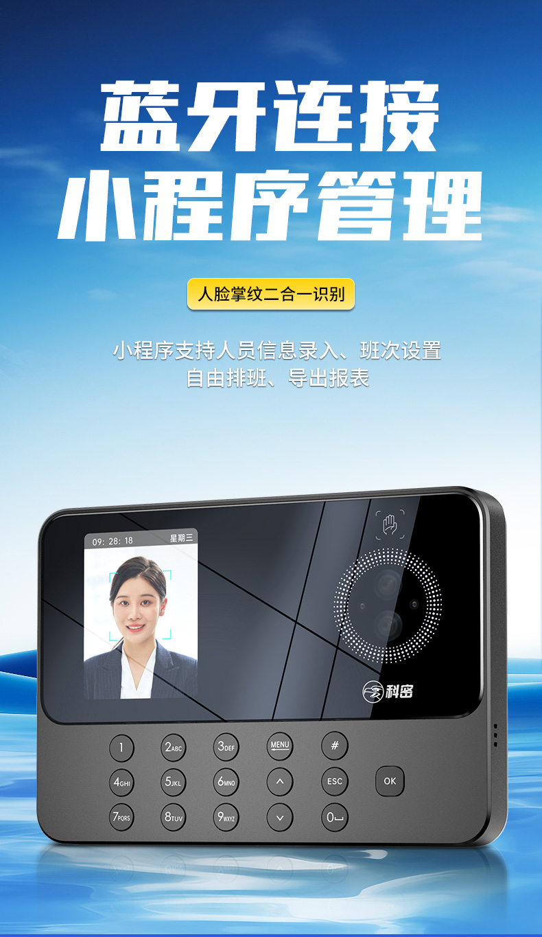 科密(comet)考勤機(jī) 打卡機(jī)人臉+掌紋識別考勤機(jī) 藍(lán)牙連接 小程序管理 自動生成報(bào)表PV10W