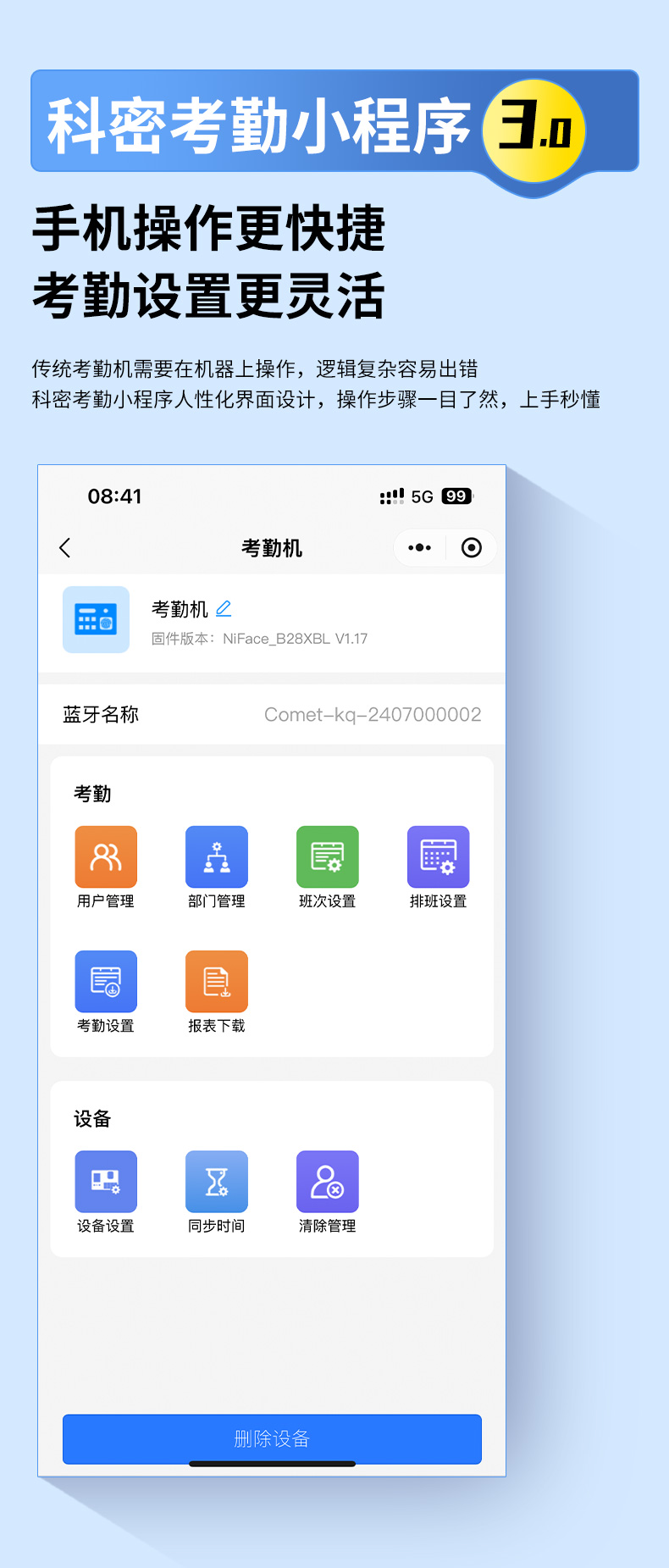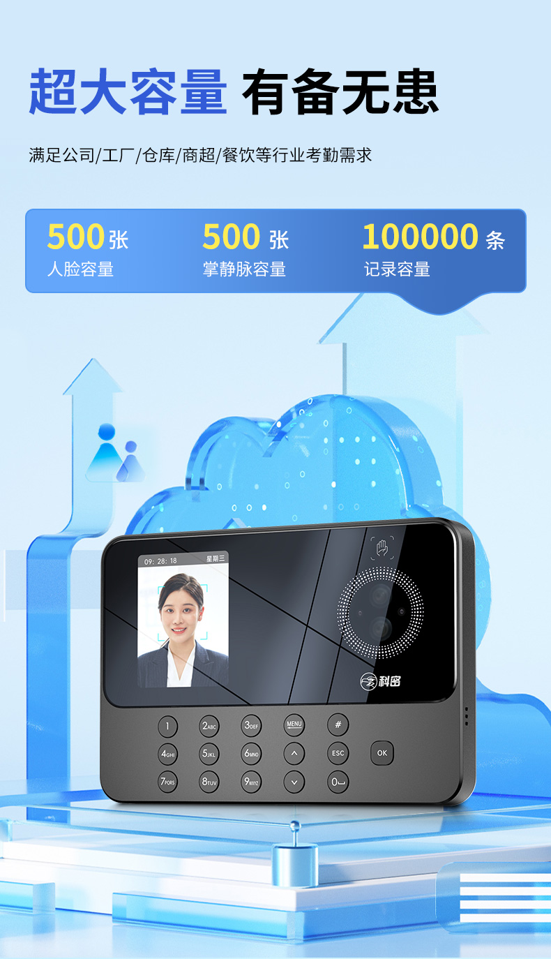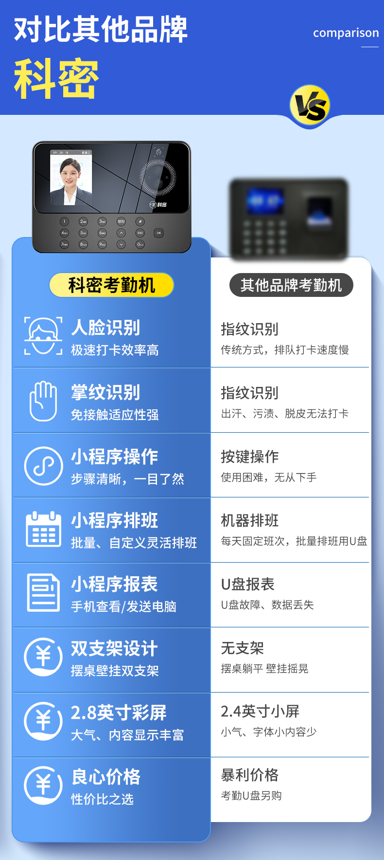 科密(comet)考勤機(jī) 打卡機(jī)人臉+掌紋識別考勤機(jī) 藍(lán)牙連接 小程序管理 自動生成報(bào)表PV10W