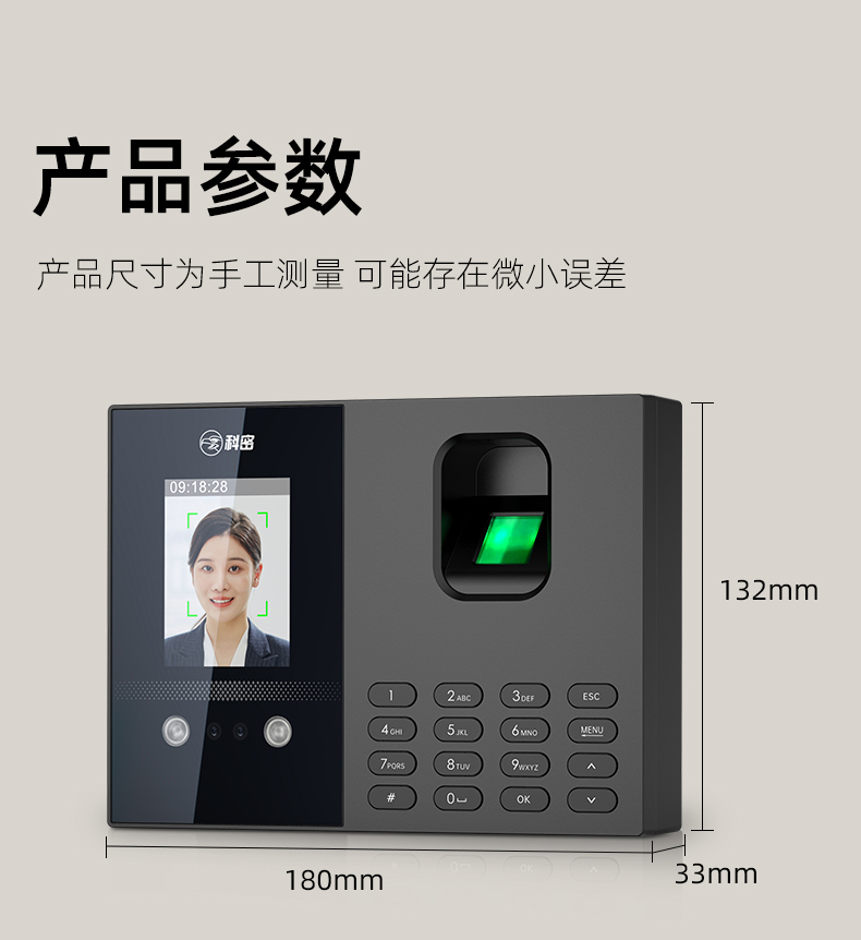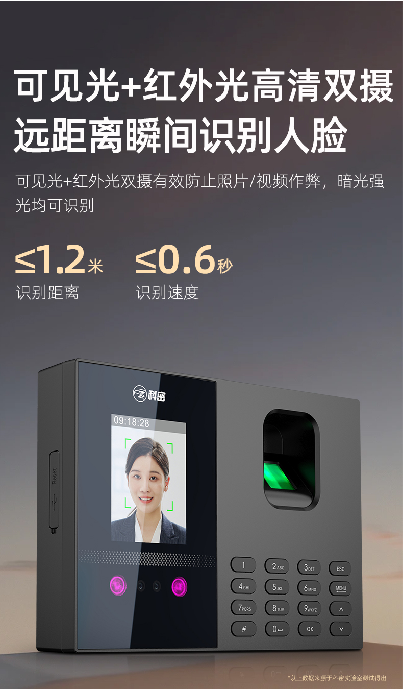 科密(comet)考勤機(jī) 打卡機(jī)人臉+指紋+掌紋識別考勤機(jī) 藍(lán)牙連接 小程序管理 自動生成報表FC02W