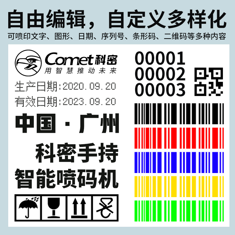科密(comet)手持式噴碼機打碼機 生產(chǎn)日期序列號文字二維碼圖標 紙箱塑料玻璃金屬快干噴墨打印機 M1P