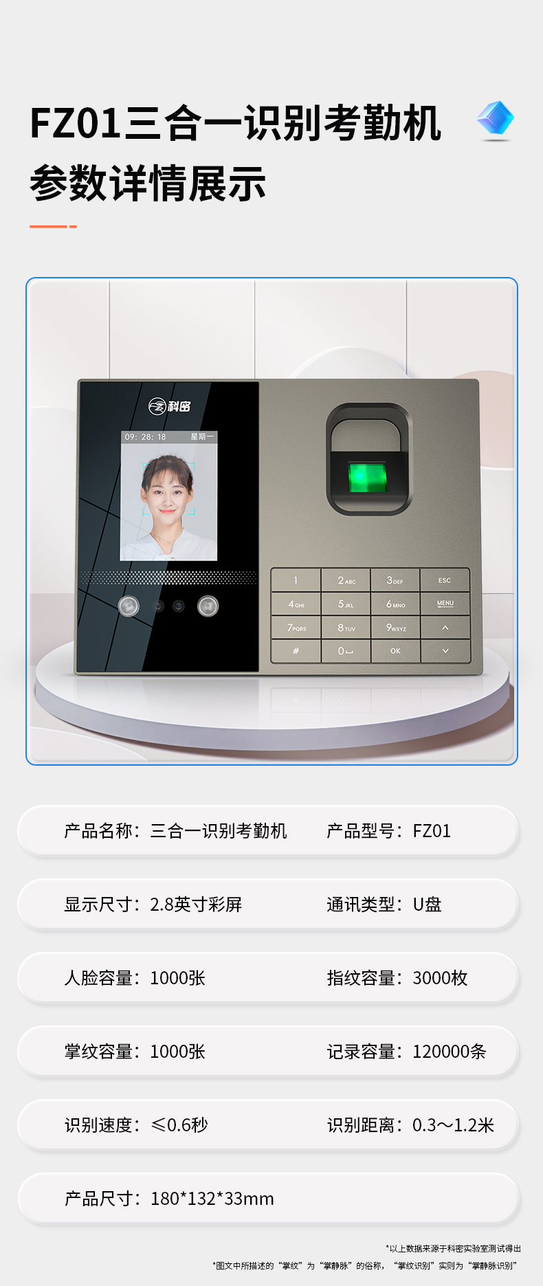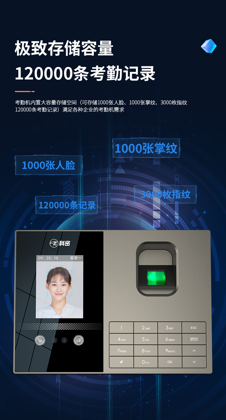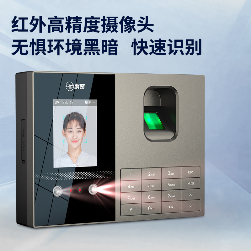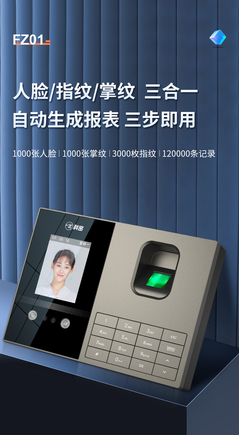 科密考勤機(jī) 打卡機(jī)人臉+指紋 掌靜脈識別 免網(wǎng)絡(luò)免軟件 大容量設(shè)置簡單 自動生成報(bào)表考勤機(jī)FZ01