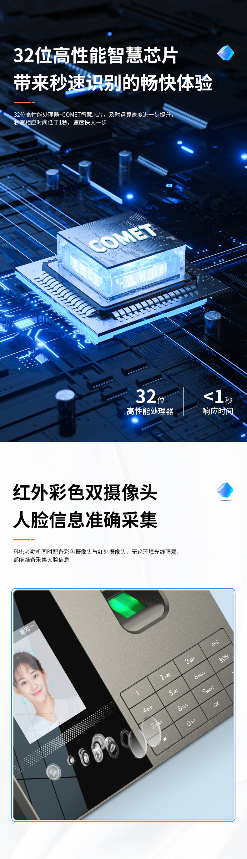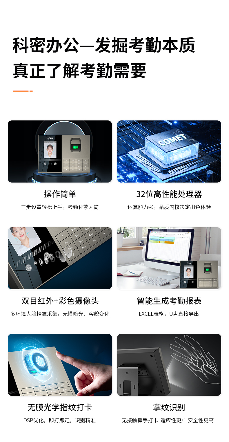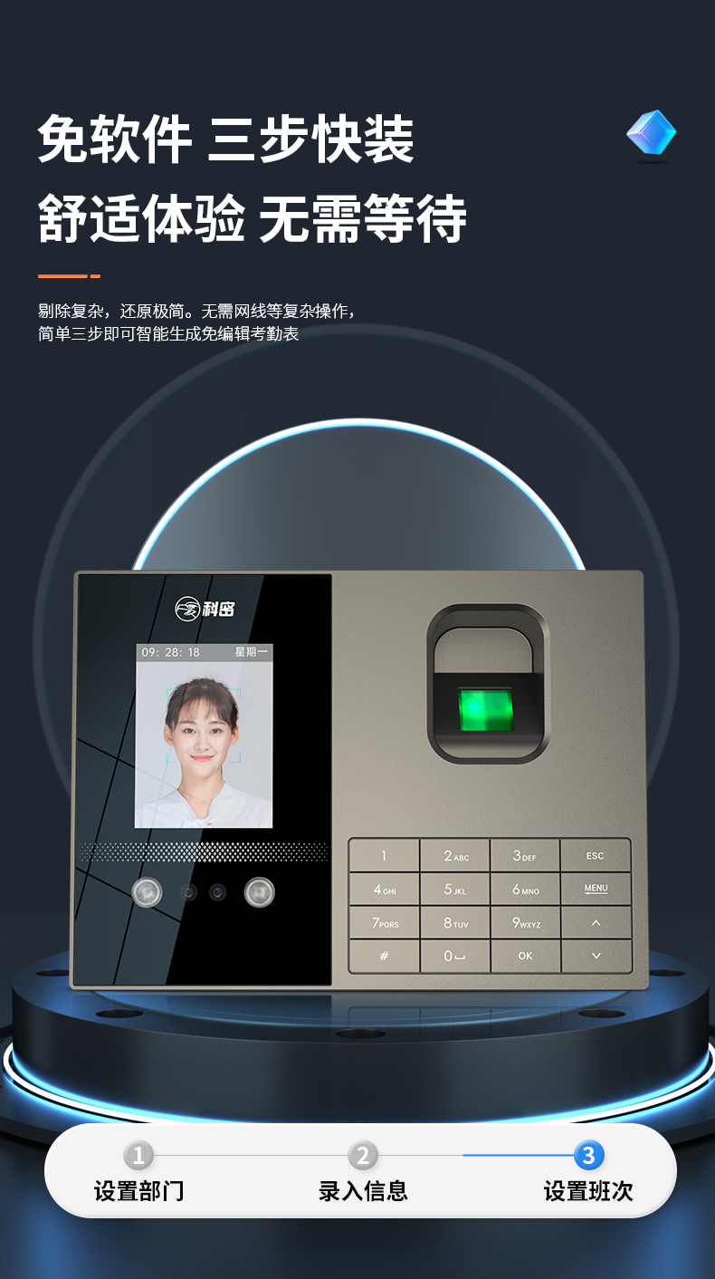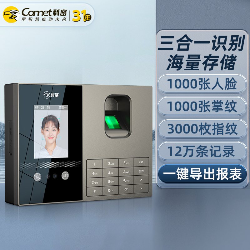 科密考勤機(jī) 打卡機(jī)人臉+指紋 掌靜脈識別 免網(wǎng)絡(luò)免軟件 大容量設(shè)置簡單 自動生成報(bào)表考勤機(jī)FZ01
