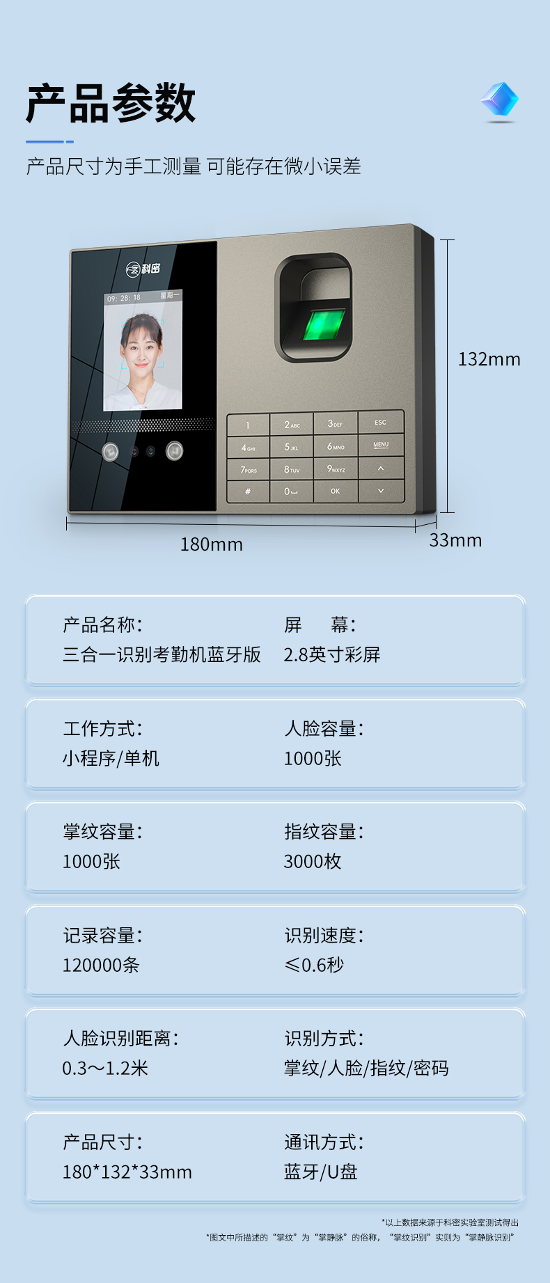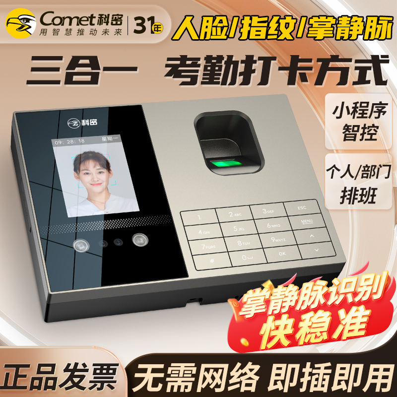 科密(comet)考勤機(jī) 打卡機(jī)人臉+指紋掌靜脈識(shí)別考勤機(jī) 藍(lán)牙連接 小程序管理 自動(dòng)生成報(bào)表FZ03