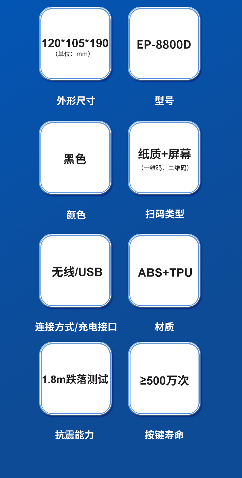 科密EP-8800D掃描槍無線一二維掃碼槍影像式條碼槍 物流快遞倉儲商超收銀醫(yī)保碼掃碼器 配充電座