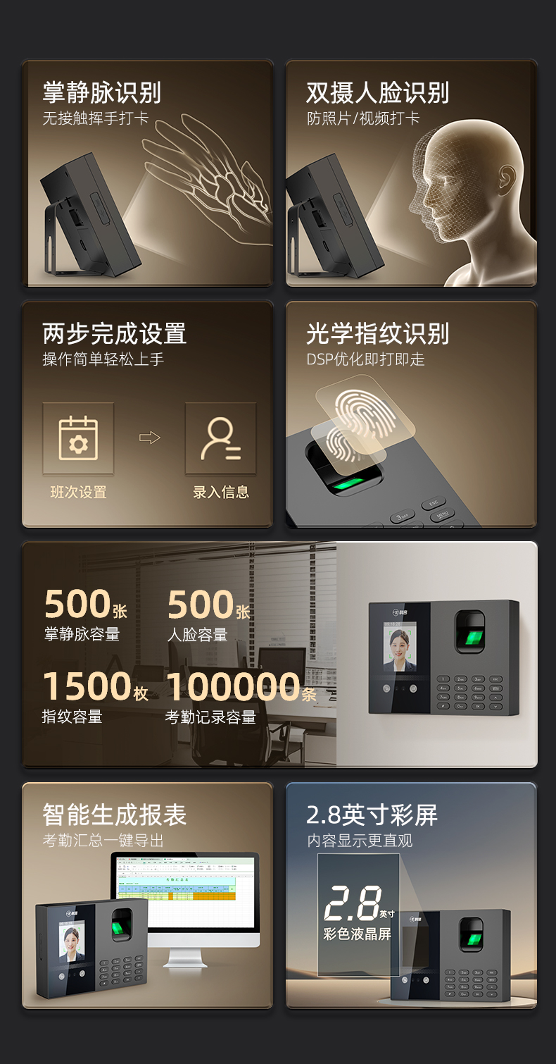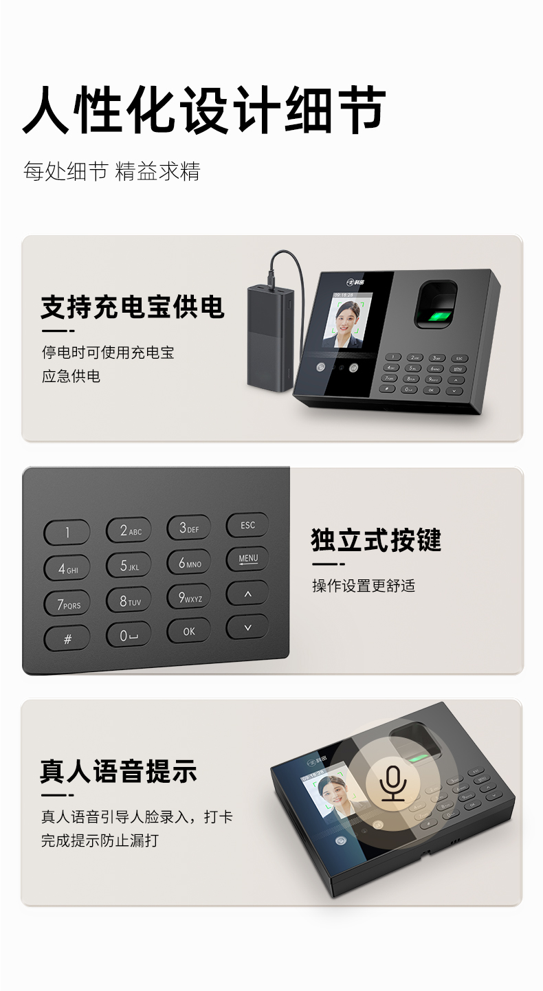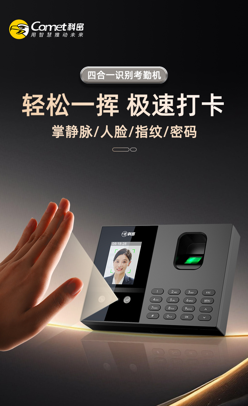 科密(comet)考勤機 人臉指紋打卡機 免網(wǎng)絡(luò)免軟件 大容量秒識別自動生成報表打卡考勤機FC02S