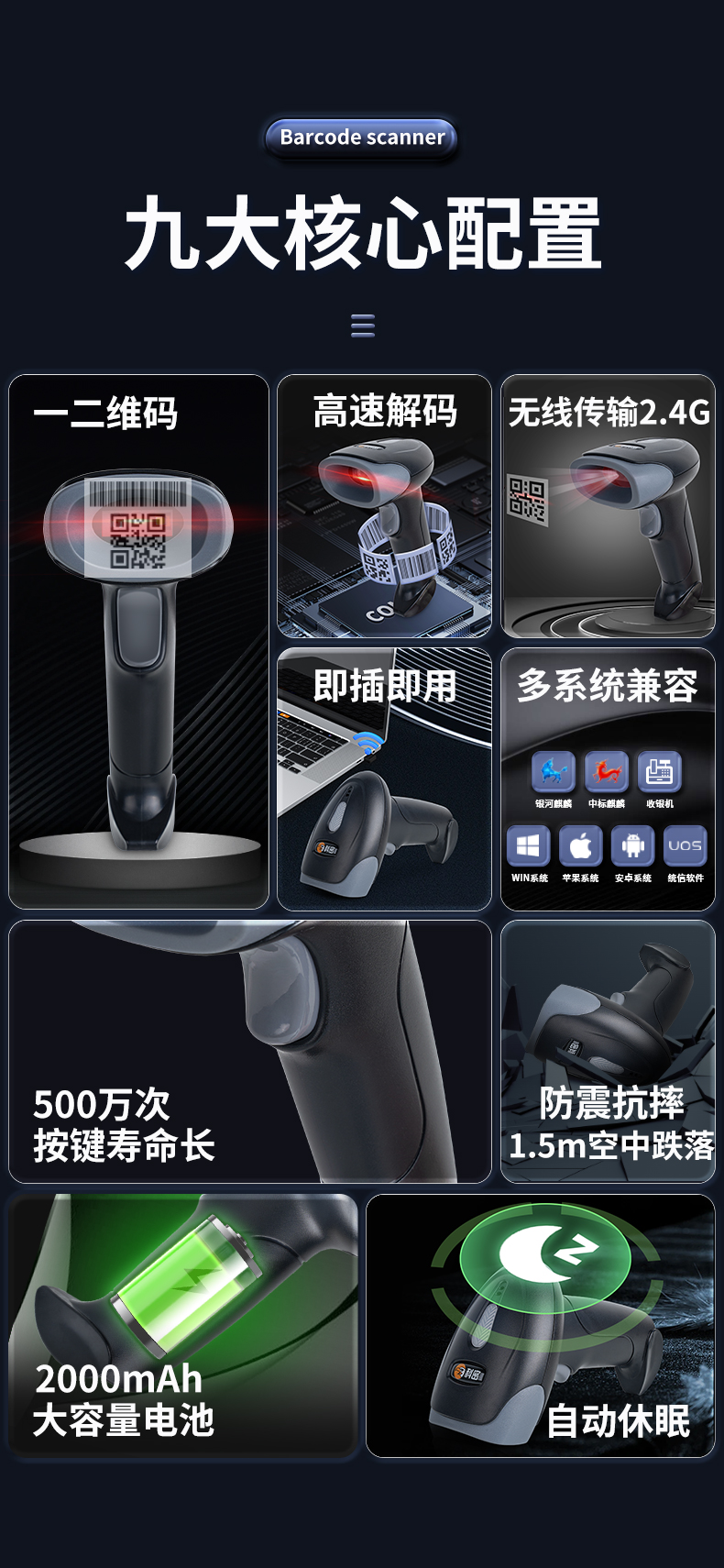 科密掃碼槍無線二維碼掃描槍藥店掃碼槍醫(yī)用倉儲(chǔ)快遞商品條碼槍