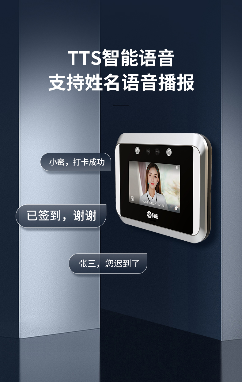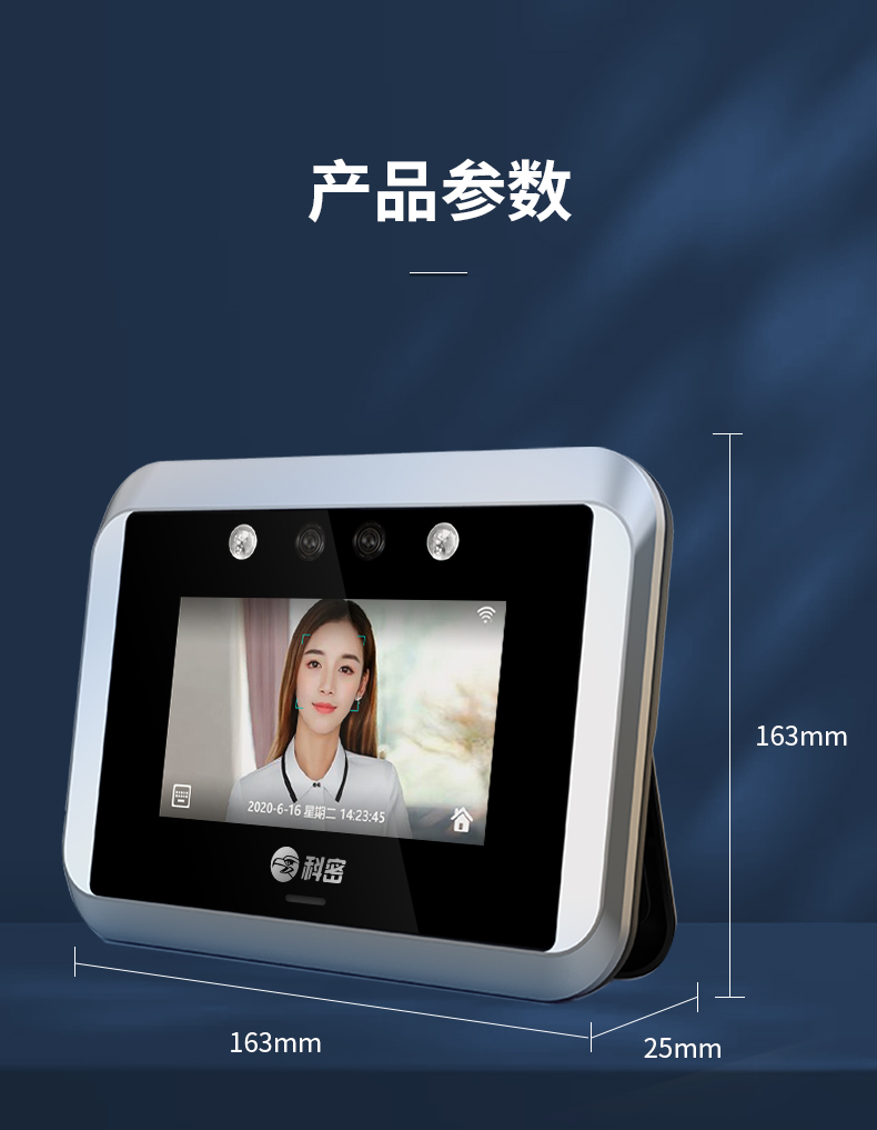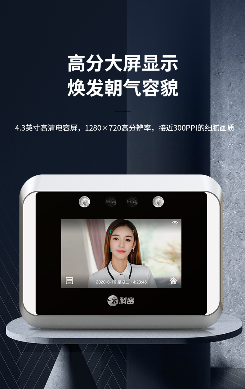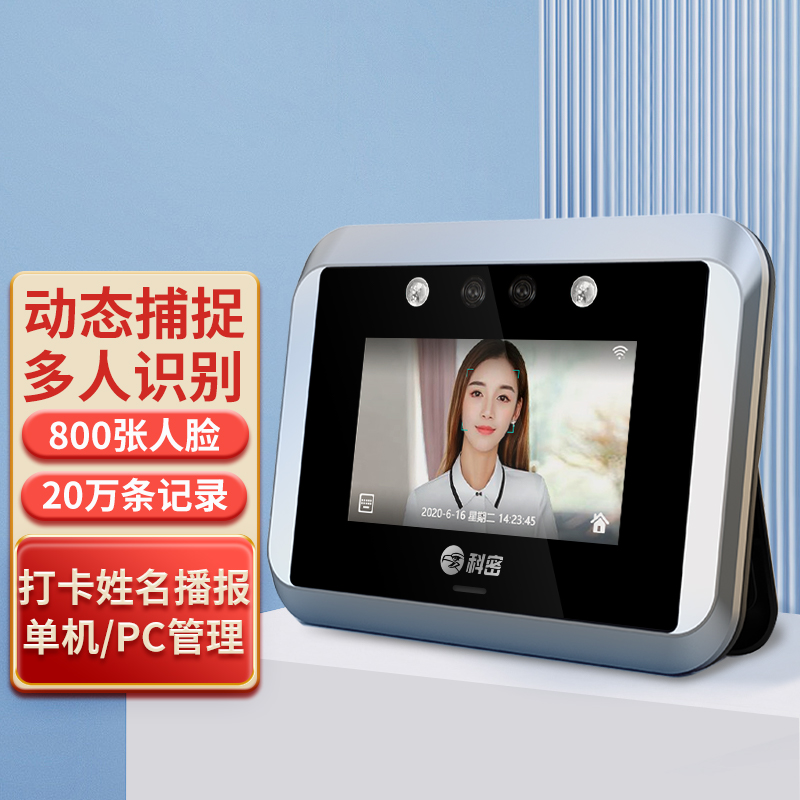 科密(comet) 動(dòng)態(tài)人臉識(shí)別考勤機(jī) 無(wú)接觸多人同時(shí)打卡機(jī) wifi連接 4.3英寸高清大屏 考勤門(mén)禁一體打卡 V-02